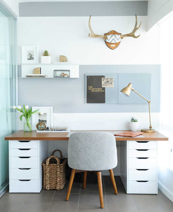 北歐風工作臺:清新的淺色原木系桌子搭配可心的綠植,簡單舒適,在這樣的環(huán)境中工作,整個心情都明朗起來。