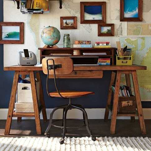 工業(yè)風工作臺:厚重或做舊處理的實木桌椅搭配適量的鐵藝元素,整個空間更顯硬朗,有種返璞歸真的敦厚和寧靜。