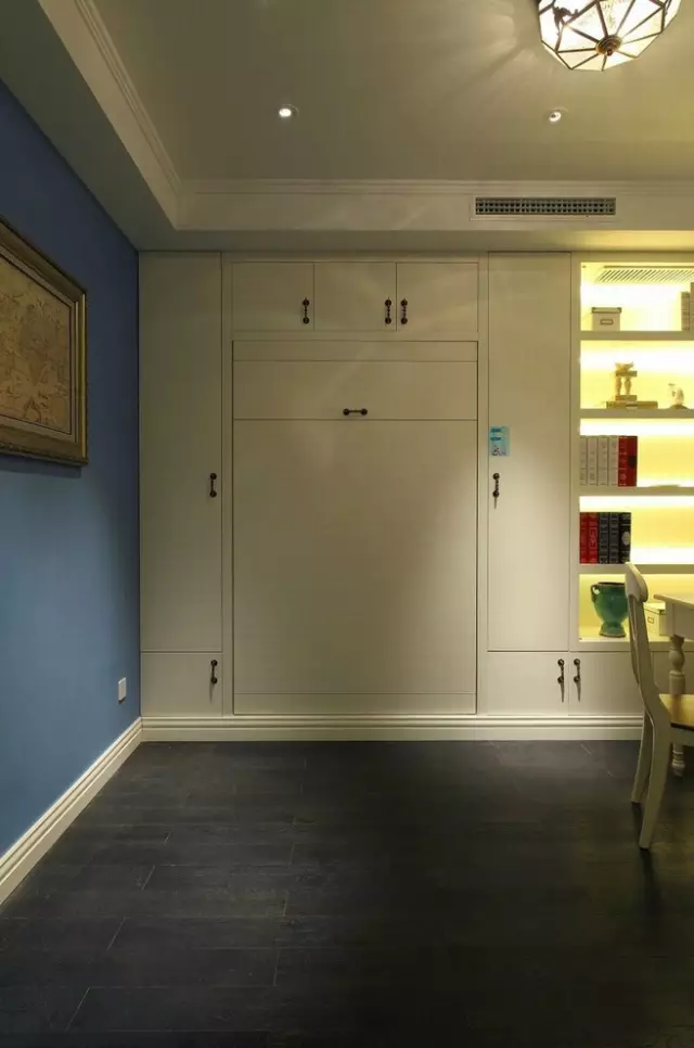 這樣的壁柜比傳統(tǒng)的小格子博古架更加吸引人,一種大氣、高雅的感覺在看到這里時(shí)油然而生。