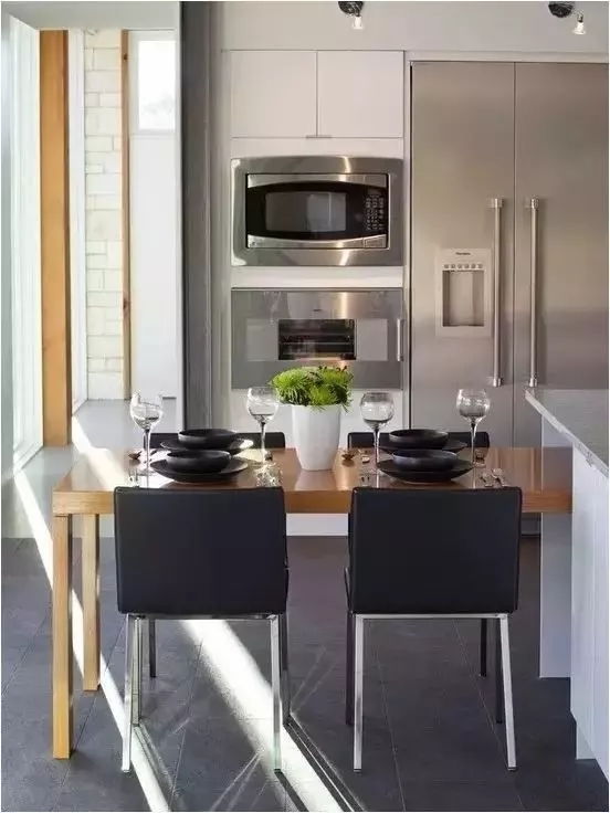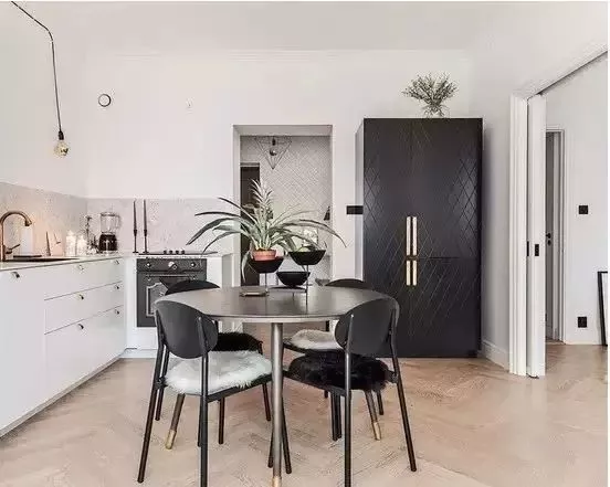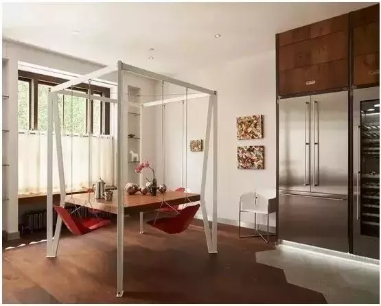 可以用推拉門的形式,將冰箱隱藏起來 ,整體設(shè)計,讓冰箱顯得不那么突兀。