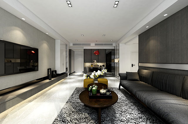 如果客廳比較長的話最重要的就是要利用好沙發(fā)和背景墻,選擇較長款的沙發(fā),延伸舒適,地毯也與之為伍,茶幾不夠可以大膽使用2個,而電視背景墻則聰明的選用了嵌壁式設計,而選擇了亮白色的墻漆讓空間明亮而寬敞。