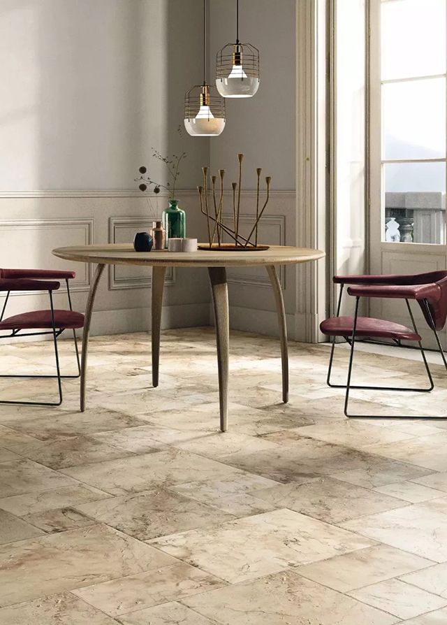 鋪貼在地面上形成流動(dòng)的延伸感,