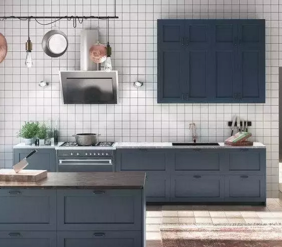 藍(lán)色櫥柜也很常見,但絕不是辣眼睛的熒光藍(lán),而是深藍(lán)、蒂芙尼藍(lán),淺藍(lán),這些都是適合櫥柜的顏色。