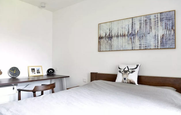 主臥空間,休息家小型工作區(qū),簡(jiǎn)單,清爽,干凈,專門買了大大的床,去掉多余裝飾只留了簡(jiǎn)單線條裝飾畫,