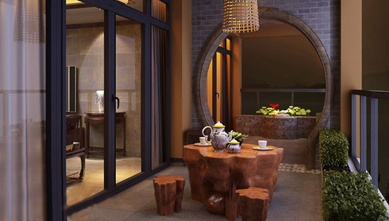 茶館改造并不需要故意的裝修,用玻璃窗把陽臺關(guān)閉后,在墻面貼上文化石,或者是仿青石板的瓷磚,天花板用雕花木線條勾邊,這些元素都定格了茶館的中式意蘊(yùn)。茶館的資料以竹、木、藤、麻、布等。竹給人清雅脫俗之感,木給人以溫暖結(jié)壯之感,藤、麻給人以天然淳樸之感,而布的細(xì)膩漫長更是無物可比。