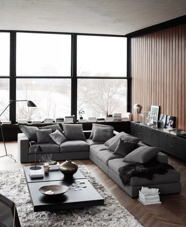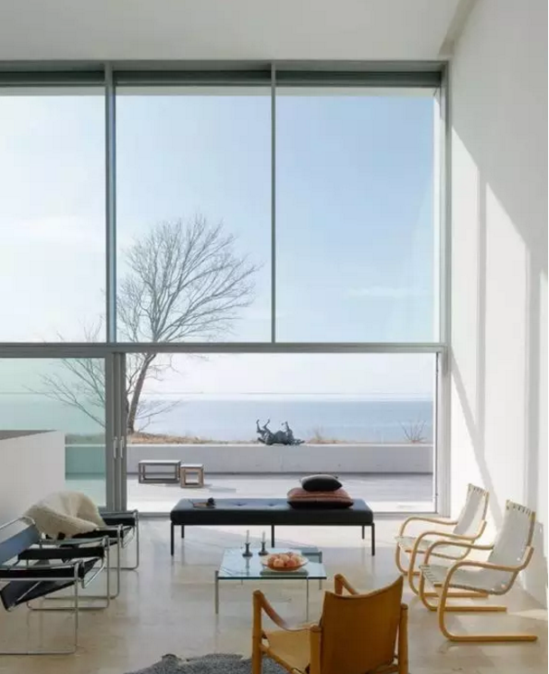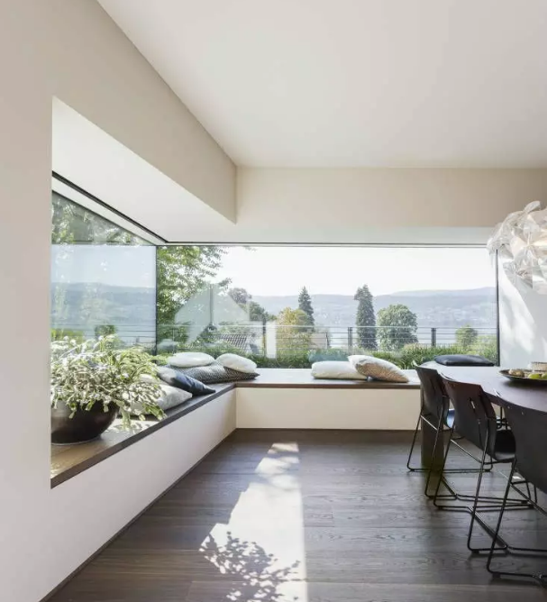大面積的固定窗也很受歡迎,很好的取到室外的美景,它不僅采光好,而且密封、隔熱性較好,但是不能開啟,只能用在家里的某一部分,因?yàn)樗荒荛_窗換氣。