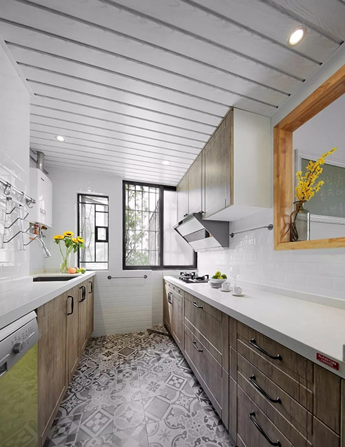 鋁框玻璃門跟一般的櫥柜門板不一樣,一般不大面積使用,只用作點(diǎn)綴。通常會(huì)在上柜裝兩個(gè)鋁框玻璃門,一般是200左右一扇。