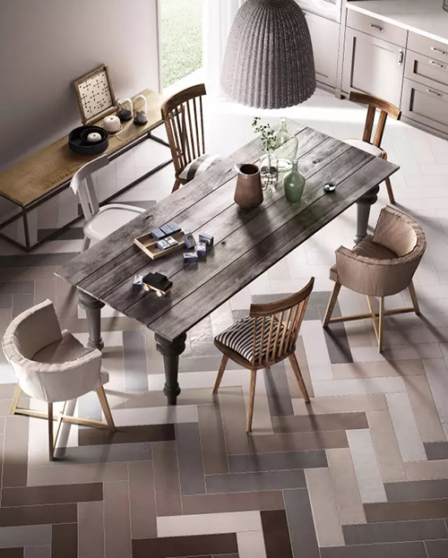 點綴式鋪貼一般用磚較少,且有一定的規(guī)律性,讓空間顯得更有精致感。
