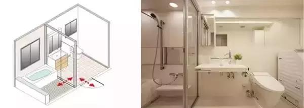 這種做法比較類似國內(nèi)最近開始流行的干濕分離的做法。占用空間并不大,但是能夠比較有效的阻止水蒸氣災(zāi)害。