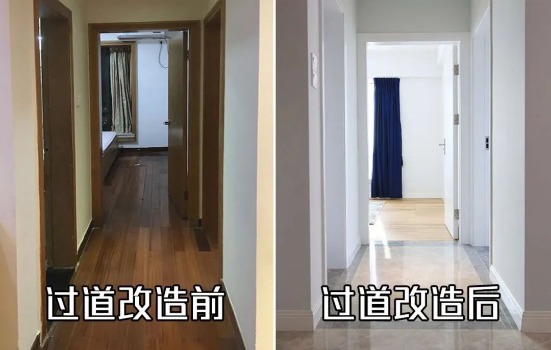 木地板換成地磚,耐磨防潮,而且客廳顯得更加亮堂,過(guò)道的瓷磚加邊線(xiàn),以達(dá)到空間上的區(qū)別,并且增添了美感,也避免單調(diào)。