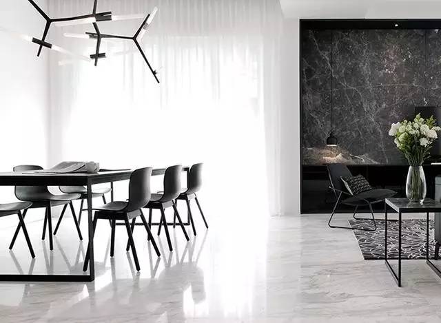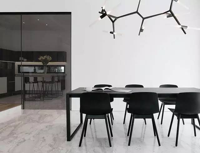 ▲餐桌上方的形如樹(shù)枝狀的創(chuàng)意吊燈是很好的時(shí)尚助攻,還帶來(lái)了幾分藝術(shù)的因子。