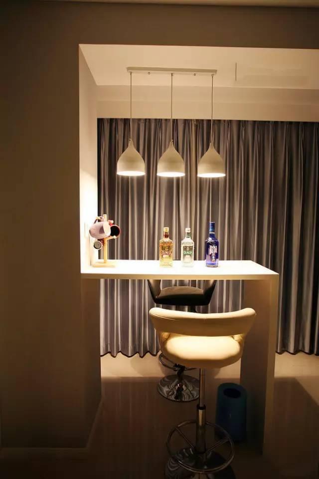 小巧的吧臺占據(jù)的位置非常小,利用陽臺和客廳之間的位置,做上一個(gè)小吧臺吧,這里的光線又好,晚上欣賞夜景也方便,實(shí)在是提升吧臺浪漫程度的一個(gè)好地方!
