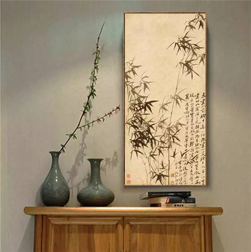 書(shū)房要求營(yíng)造濃厚的文化氣息和靜謐的環(huán)境氛圍,掛畫(huà)應(yīng)選擇優(yōu)雅素淡的畫(huà)面風(fēng)格,如選用一些書(shū)法、山水和風(fēng)景等題材的畫(huà)作。