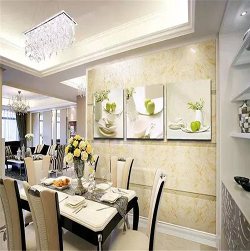 餐廳是進(jìn)餐場(chǎng)所,餐廳應(yīng)營(yíng)造出一種能夠增進(jìn)食欲、熱情好客的畫(huà)面氛圍,給人新鮮清爽的就餐感覺(jué)。因此可以選擇一些果蔬、插花、靜物、自然風(fēng)光等題材的掛畫(huà);如有吧臺(tái),可掛一些對(duì)應(yīng)酒杯洋酒的現(xiàn)代油畫(huà)。
