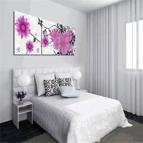臥室是個(gè)人生活的私密空間,也是休息睡眠場(chǎng)所。臥室要營(yíng)造溫馨浪漫、舒適恬靜的氛圍,掛畫(huà)以暖色為主色調(diào)??梢赃x擇人物人體、花卉等題材掛畫(huà),當(dāng)然也可以掛自己的肖像畫(huà)或結(jié)婚照,以增進(jìn)感情。