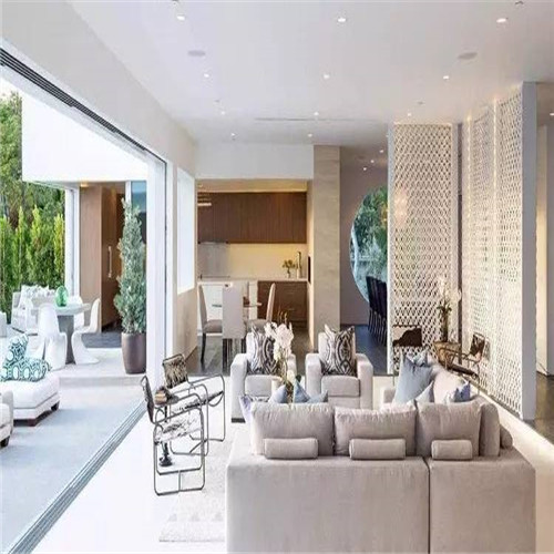 1、長條形的客廳在與餐廳等隔斷時(shí),應(yīng)避免采用硬隔斷,因?yàn)楸緛砜臻g就小,硬隔斷會(huì)使客廳看起來像個(gè)箱子一樣,給人壓抑感,而且也有可能影響采光。開放式的客廳餐廳可能效果會(huì)更好一些,不管是休閑還是吃飯,都不會(huì)覺得擁擠。對(duì)于不喜歡開放式的朋友來說,可以使用軟隔斷,比如用一個(gè)簾子或者鏤空的屏風(fēng)等,效果都會(huì)非常不錯(cuò)。但是隔斷物的顏色不易太過厚重,以簡潔輕快為好。