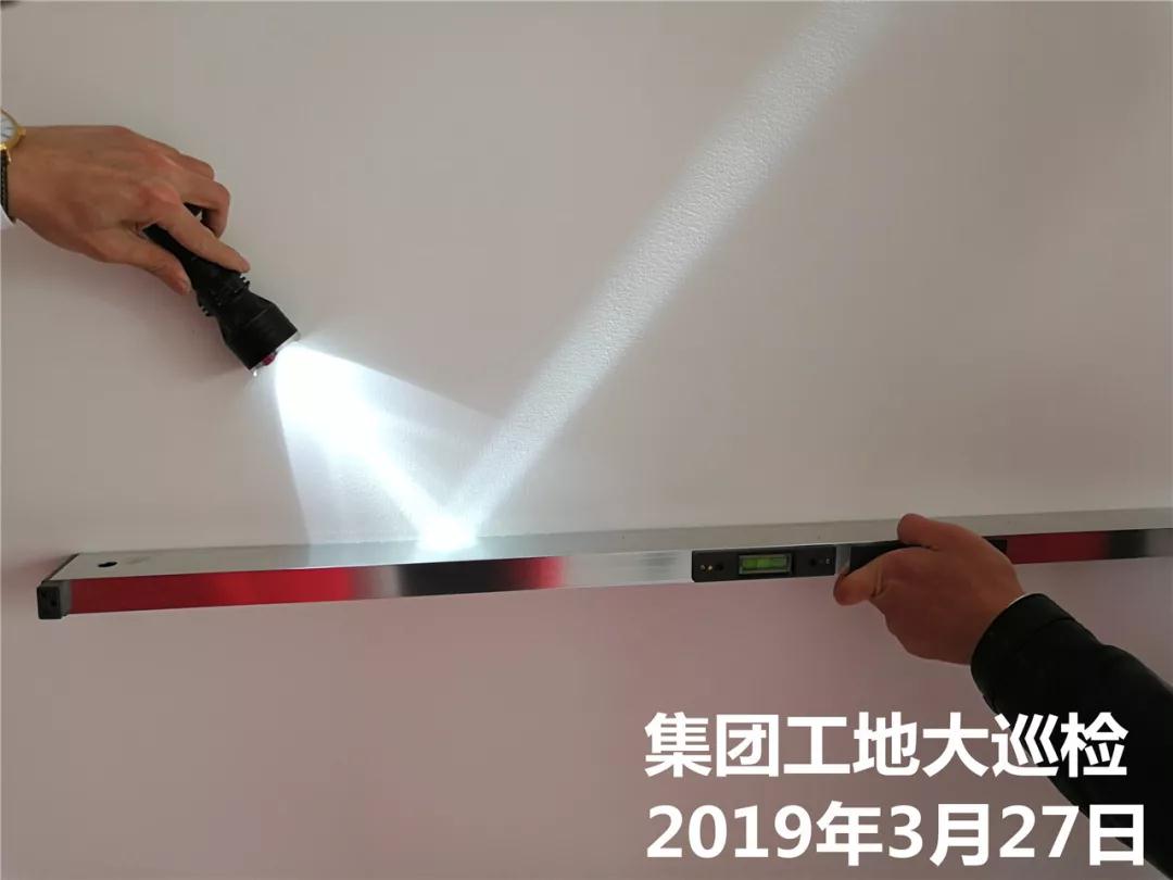 運(yùn)營部成云總經(jīng)理與張立安總經(jīng)理用強(qiáng)光手電筒檢查墻面膩?zhàn)邮┕?/span>