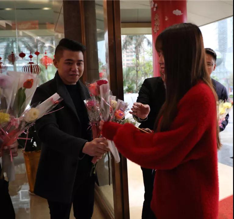 ▲集團副總裁張總給中庭女神送上節(jié)日禮物