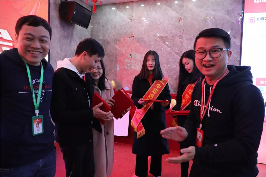 丁胡總裁為獲獎(jiǎng)團(tuán)隊(duì)頒發(fā)榮譽(yù)證書和獎(jiǎng)杯