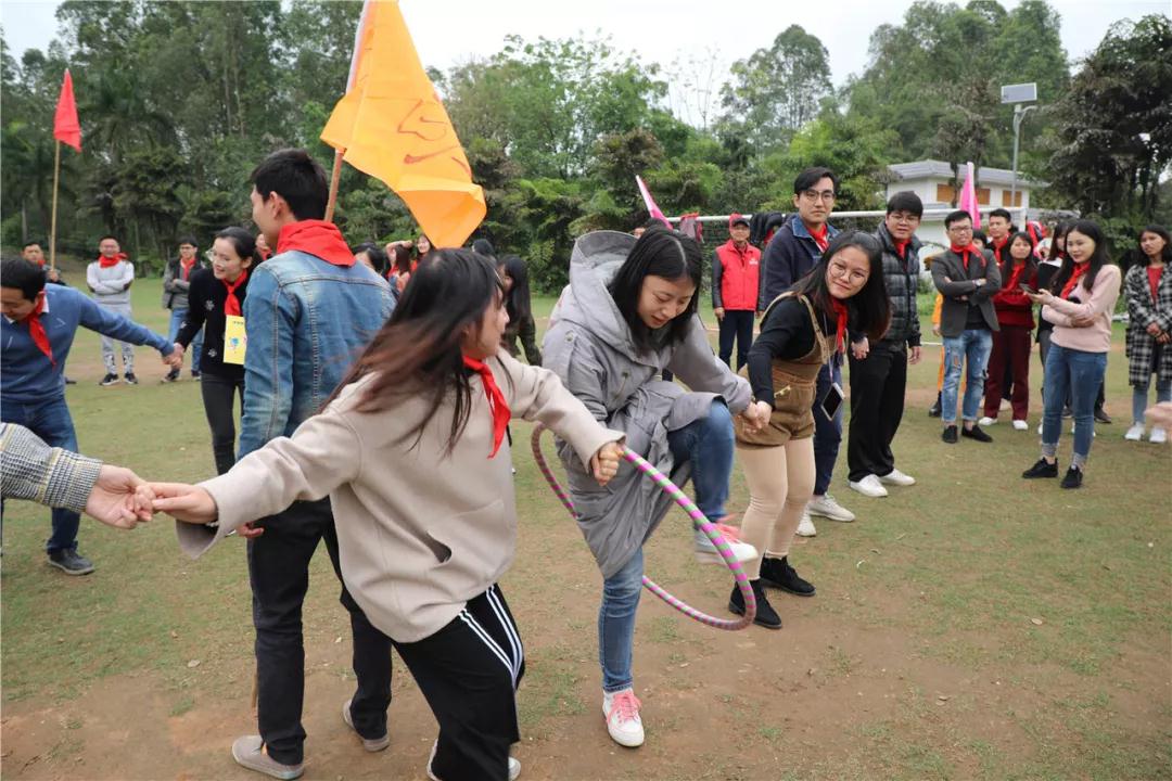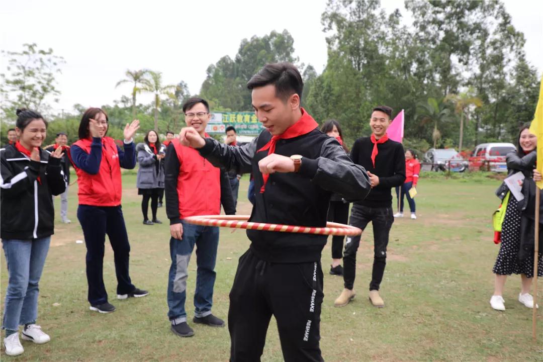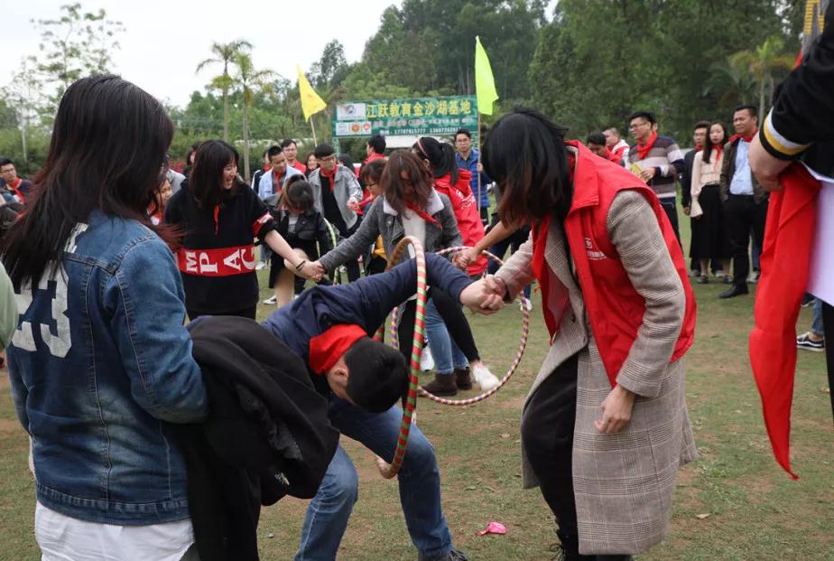游戲規(guī)則:小組人員手牽手,從第一個(gè)人傳遞拉呼啦圈至最后一人,中途隊(duì)員不能放開手或者用手去接觸呼啦圈,否側(cè)重來(lái),完成任務(wù)團(tuán)隊(duì)。