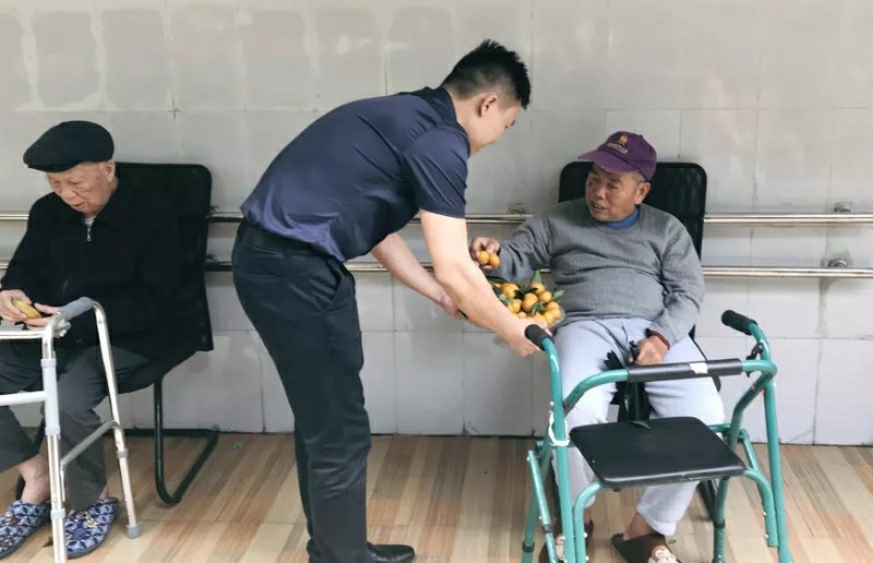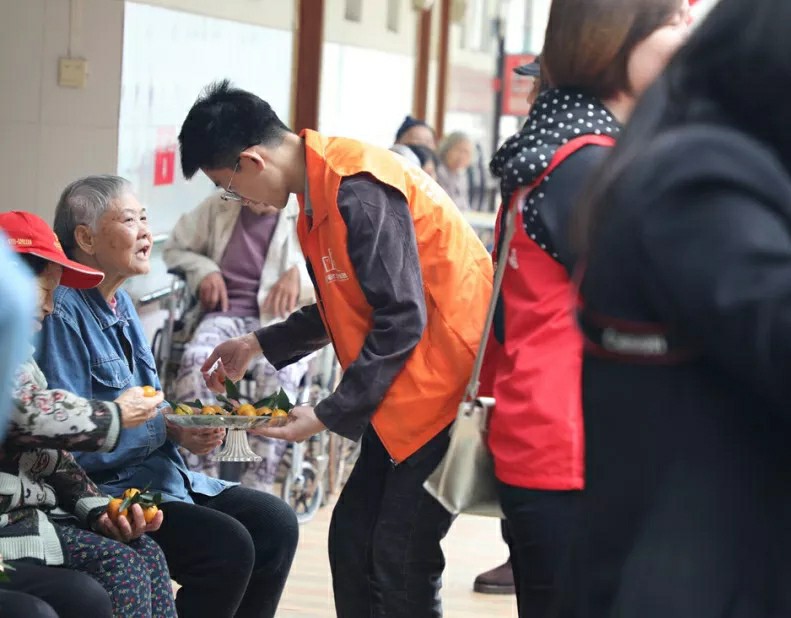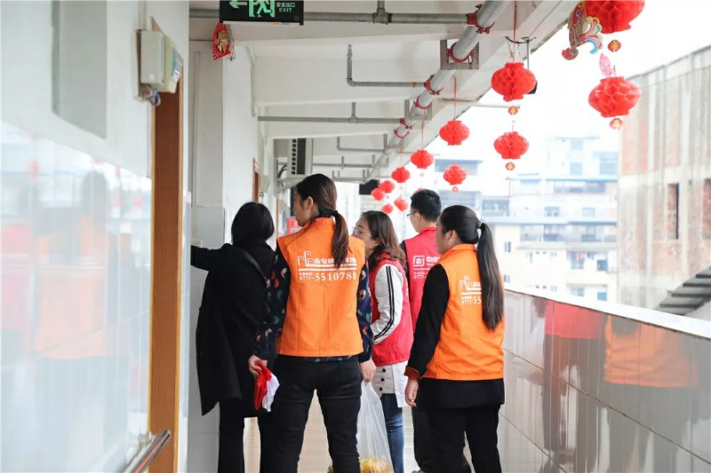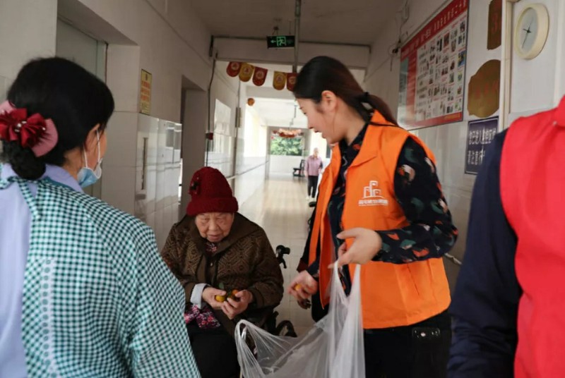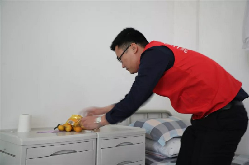 集團(tuán)家人們帶著水果走訪宿舍,邀請老人們來參加活動;同時也給行動不便不能下樓的老人送去水果,關(guān)懷老人。