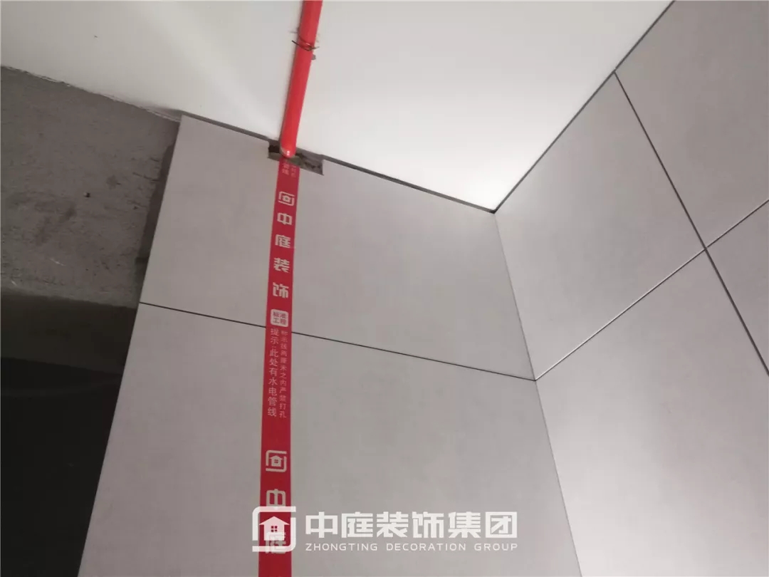 瓷磚鋪貼后做水電標(biāo)識(shí),避免后期成品安裝打孔破壞水電線管;同時(shí)對(duì)瓷磚陽角進(jìn)行保護(hù),以免搬運(yùn)材料時(shí)磕碰。
