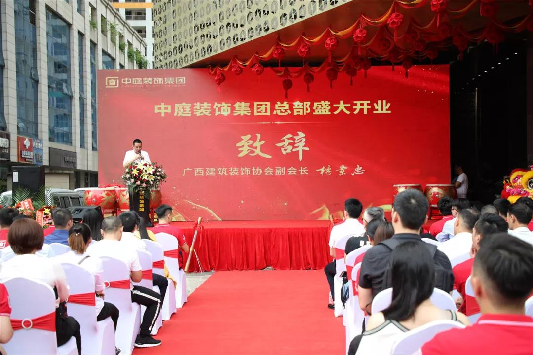 楊會(huì)長(zhǎng)代表廣西建筑裝飾協(xié)會(huì)為集團(tuán)的盛大開業(yè)慶典活動(dòng)送上真摯的祝福,同時(shí)對(duì)集團(tuán)多年來不忘初心,在廣西裝飾行業(yè)深耕細(xì)作,以優(yōu)質(zhì)的服務(wù)和質(zhì)量為廣大家庭打造了環(huán)保、綠色、健康的居住環(huán)境,營(yíng)造了良好的行業(yè)環(huán)境給予高度的贊揚(yáng)和認(rèn)可,也預(yù)祝中庭裝飾集團(tuán)此次開業(yè)活動(dòng)圓滿成功,取得佳績(jī),更上一層樓!