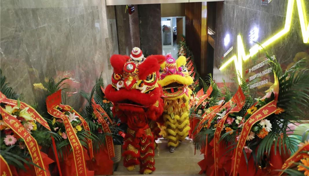 在鏗鏘有力、熱鬧非凡的鑼鼓聲中,火舞祥獅將寓意著“生財(cái)”的生菜送到集團(tuán)總裁丁胡手中,為中庭裝飾集團(tuán)獻(xiàn)上祥瑞的祝福。