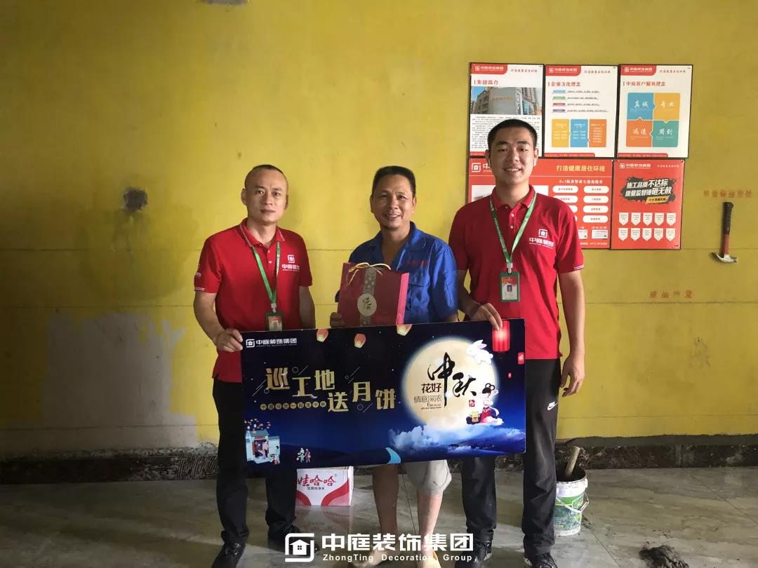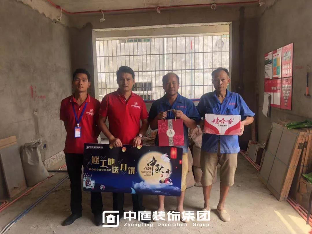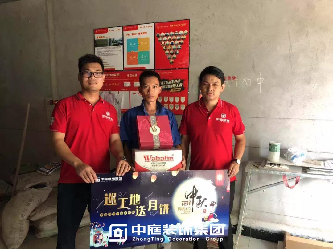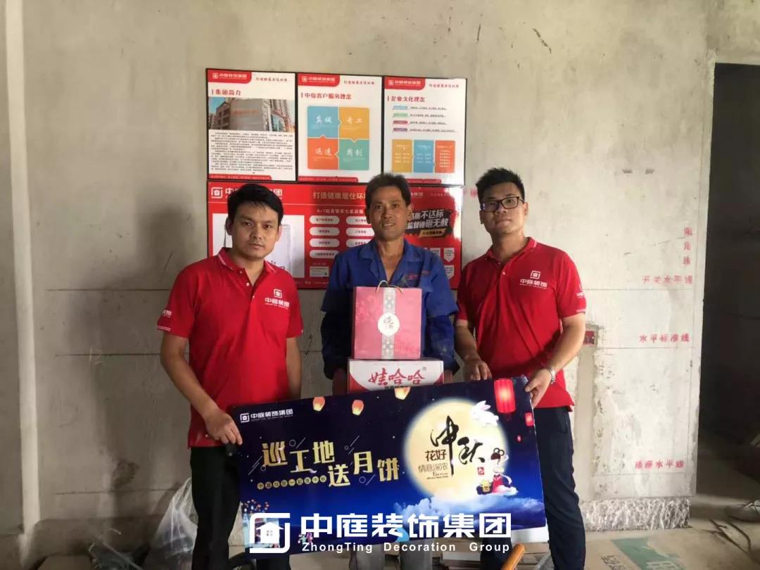 工程質量的好壞是檢驗一個裝修公司實力的標準之一,中庭裝飾集團一直把提升工地質量作為首要工作,所有施工工地均是高標準,嚴要求,在工程質量上始終嚴格把關,只為打造更多幸福品質家。高品質工地的輸出也離不開奮戰(zhàn)在一線的匠人們的付出,在中秋來臨之際,集團特地為工人師傅們送去了關懷。