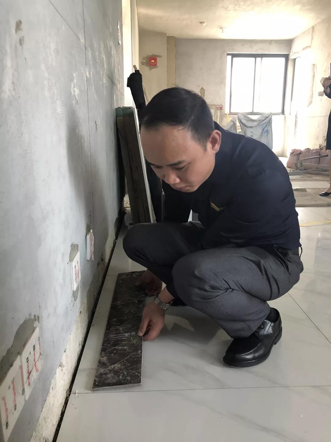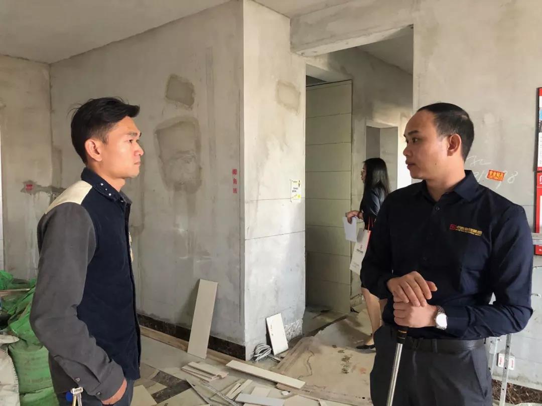 距離廣西教育廳住宅裝修集體開工儀式已過去一月有余,部分工地施工相繼進入鋪磚階段。作為教育廳住宅裝修工程總指揮,肩負著集團的使命和業(yè)主朋友們的信任,集團副總裁、工程質量管理中心總經(jīng)理吳文戰(zhàn)時刻牽掛著教育廳工地進展情況。10月30日,吳總帶領質管中心工程管理團隊赴工地現(xiàn)場對工程材料、質量和服務三大項進行突擊檢查!