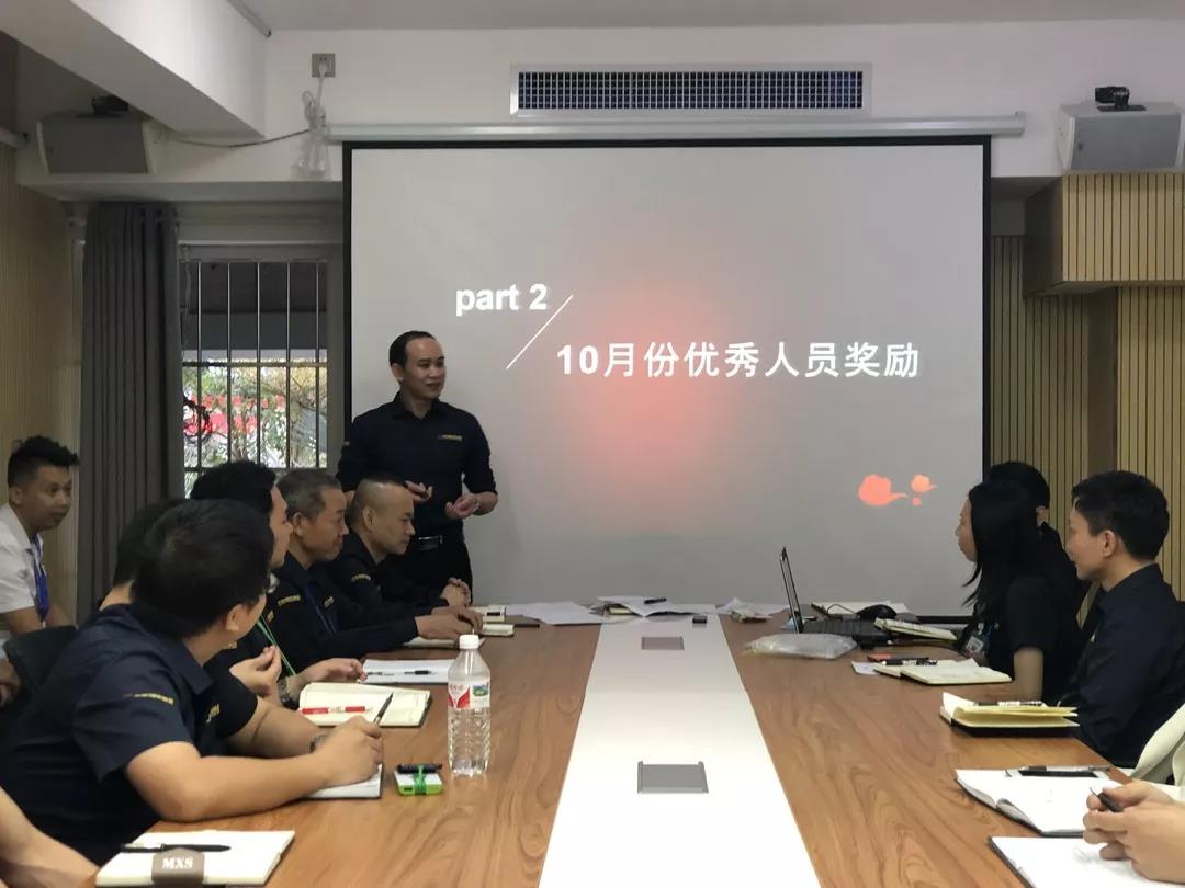 工程質(zhì)量管理中心總經(jīng)理吳文戰(zhàn)給10月表現(xiàn)優(yōu)秀的家人頒發(fā)獎勵: