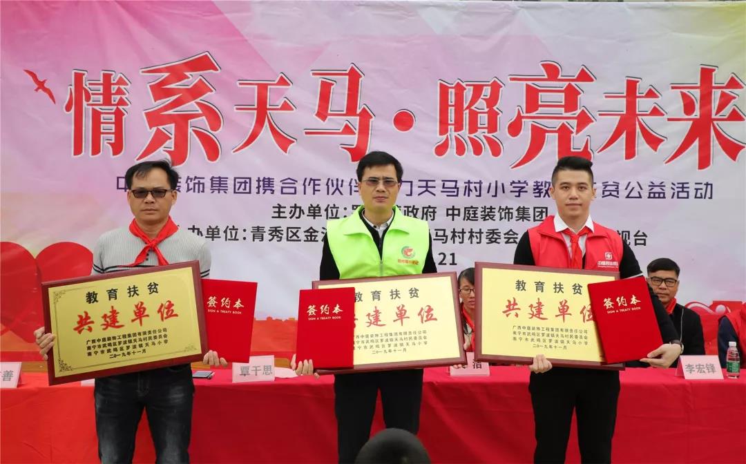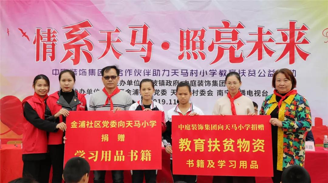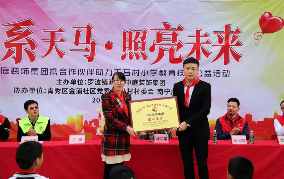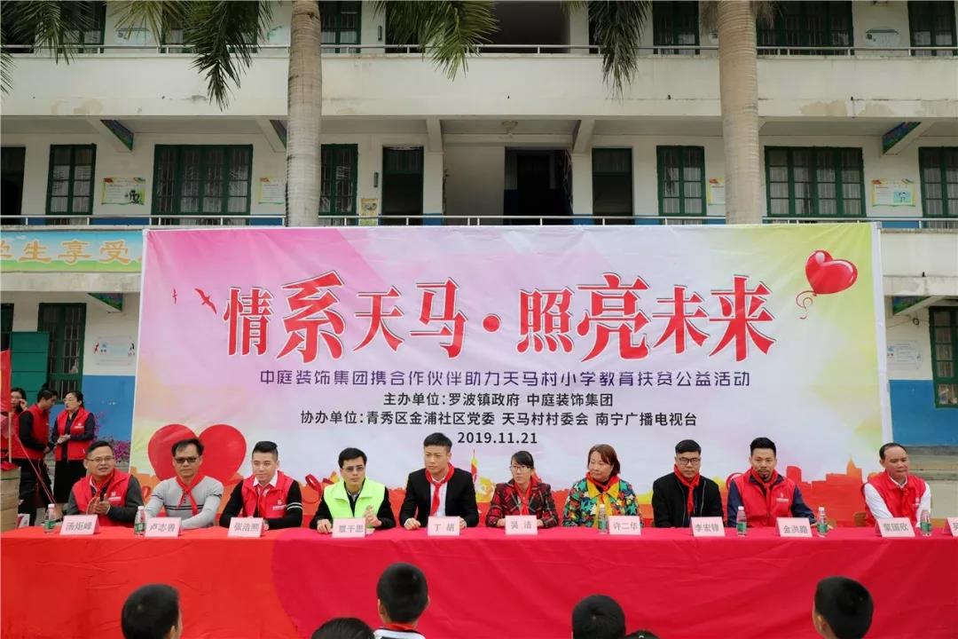 秉承著“源于社會,回饋社會”的社會責任理念,在中庭裝飾集團九周年慶之際,集團攜手戰(zhàn)略合作伙伴組成愛心助力團前往武鳴區(qū)天馬村天馬小學開展教育扶貧公益活動。
