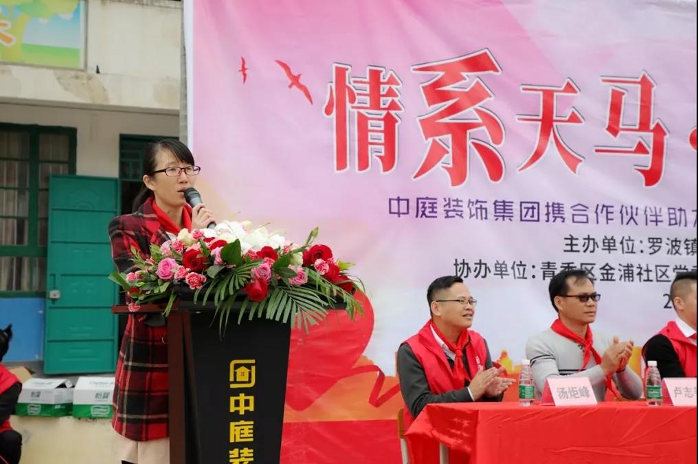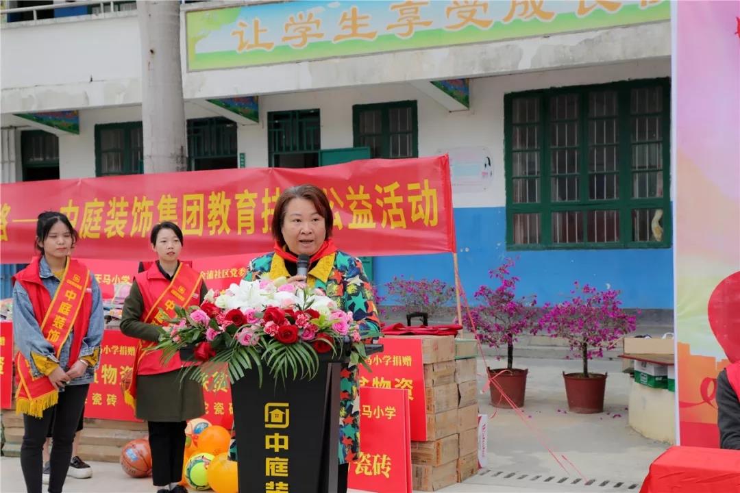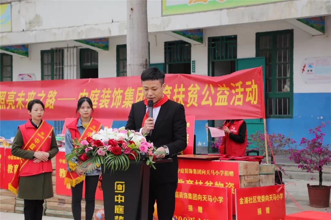 許書記表示,感謝中庭裝飾集團組織的教育扶貧公益活動。讓我們相聚在這里,深入貫徹習近平總書記“扶貧先扶志,扶貧必扶智”的重要指示精神,為天馬小學教育扶貧貢獻一份力量。