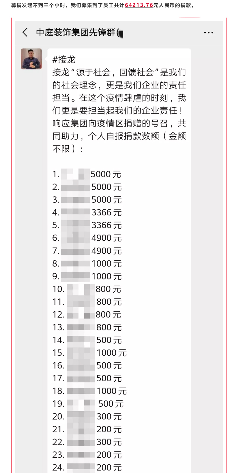 抗疫攻堅(jiān),人人有責(zé)丨中庭集團(tuán)首批員工愛(ài)心募捐已到位