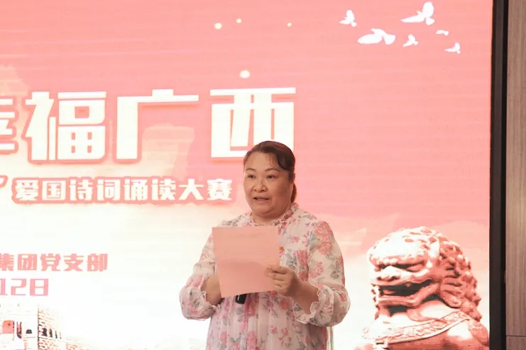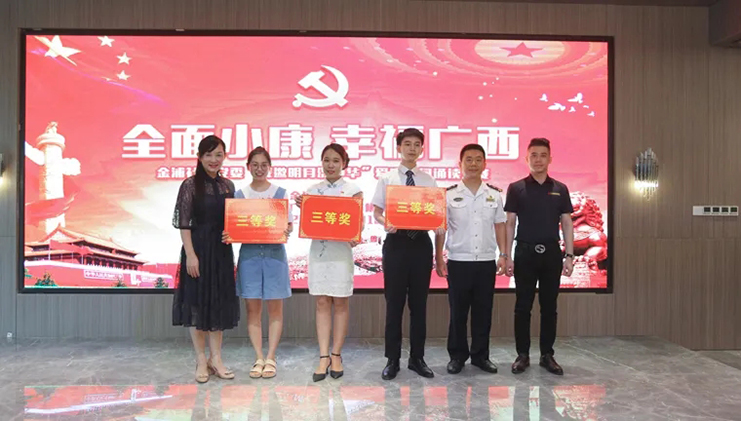 6月12日,在“七一建黨節(jié)”來(lái)臨之際,由浦社區(qū)黨委主辦、中庭裝飾集團(tuán)黨支部協(xié)辦的“全面小康 幸福廣西”愛(ài)國(guó)詩(shī)詞誦讀大賽在集團(tuán)二樓大廳成功舉辦。南寧市稅務(wù)局機(jī)關(guān)黨委、廣西海事局機(jī)關(guān)黨委、招商銀行金浦路支行黨支部、竹溪社區(qū)衛(wèi)生服務(wù)中心黨支部、廣西金孟錳業(yè)有限公司黨支部、同方知網(wǎng)黨支部、中庭裝飾集團(tuán)黨支部、北京外企人力資源黨支部、金浦社區(qū)轄區(qū)各級(jí)黨組織參加了本次活動(dòng)。