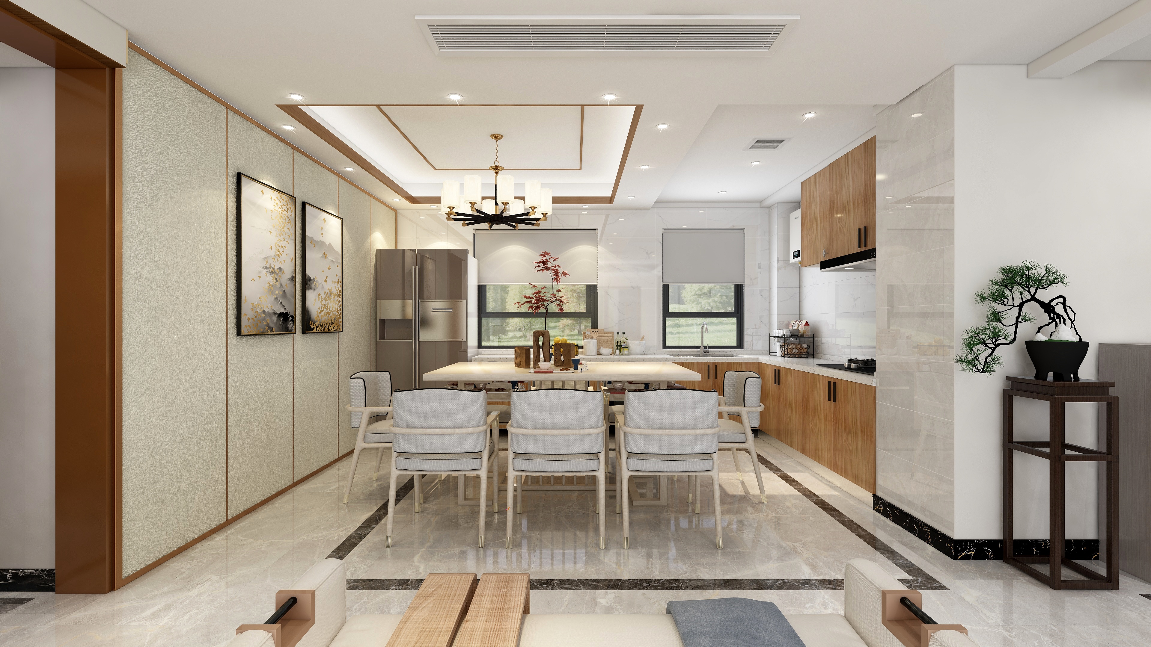 施工面積:120-150㎡| 設(shè)計風(fēng)格:新中式風(fēng)格