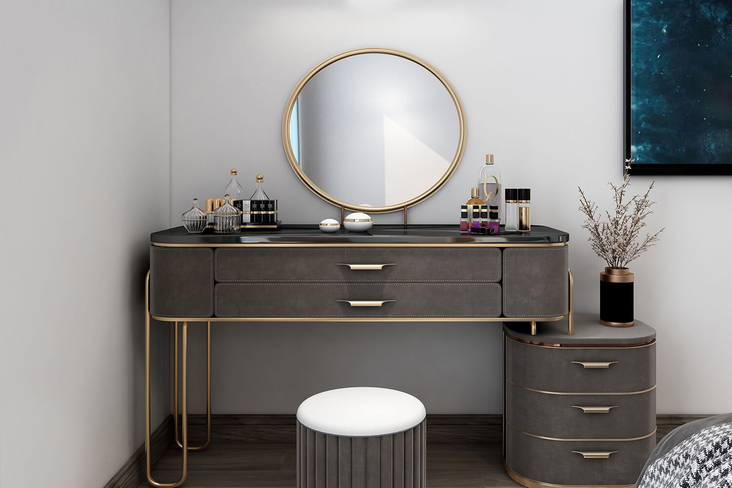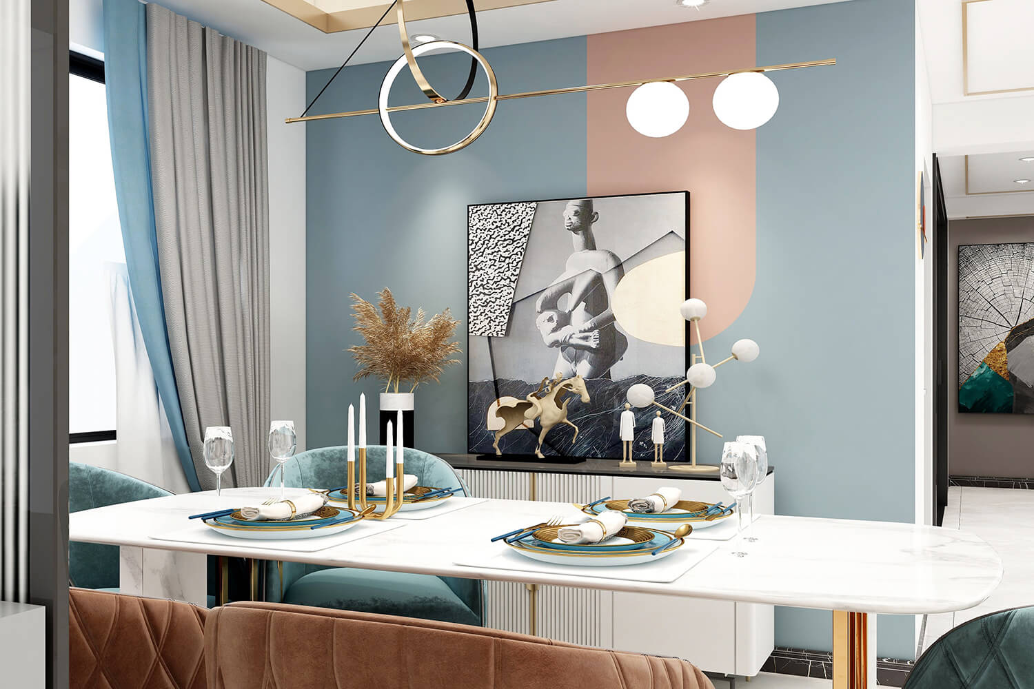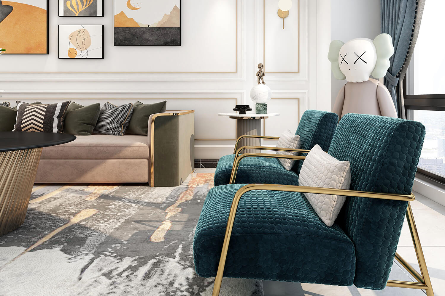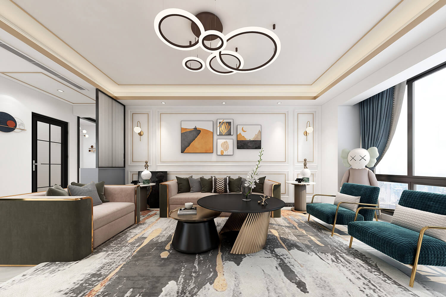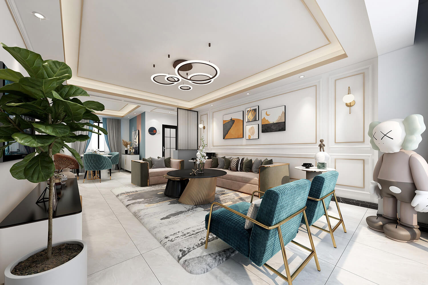 瀏覽量:391本案總面積118㎡,整體配色以白色為主色調(diào),用充滿清新氣息的綠與藍為空間帶來清爽感覺,點亮空間視覺色彩感知,展現(xiàn)別具一格的視覺感,華麗的金屬色澤增添輕奢質(zhì)感。