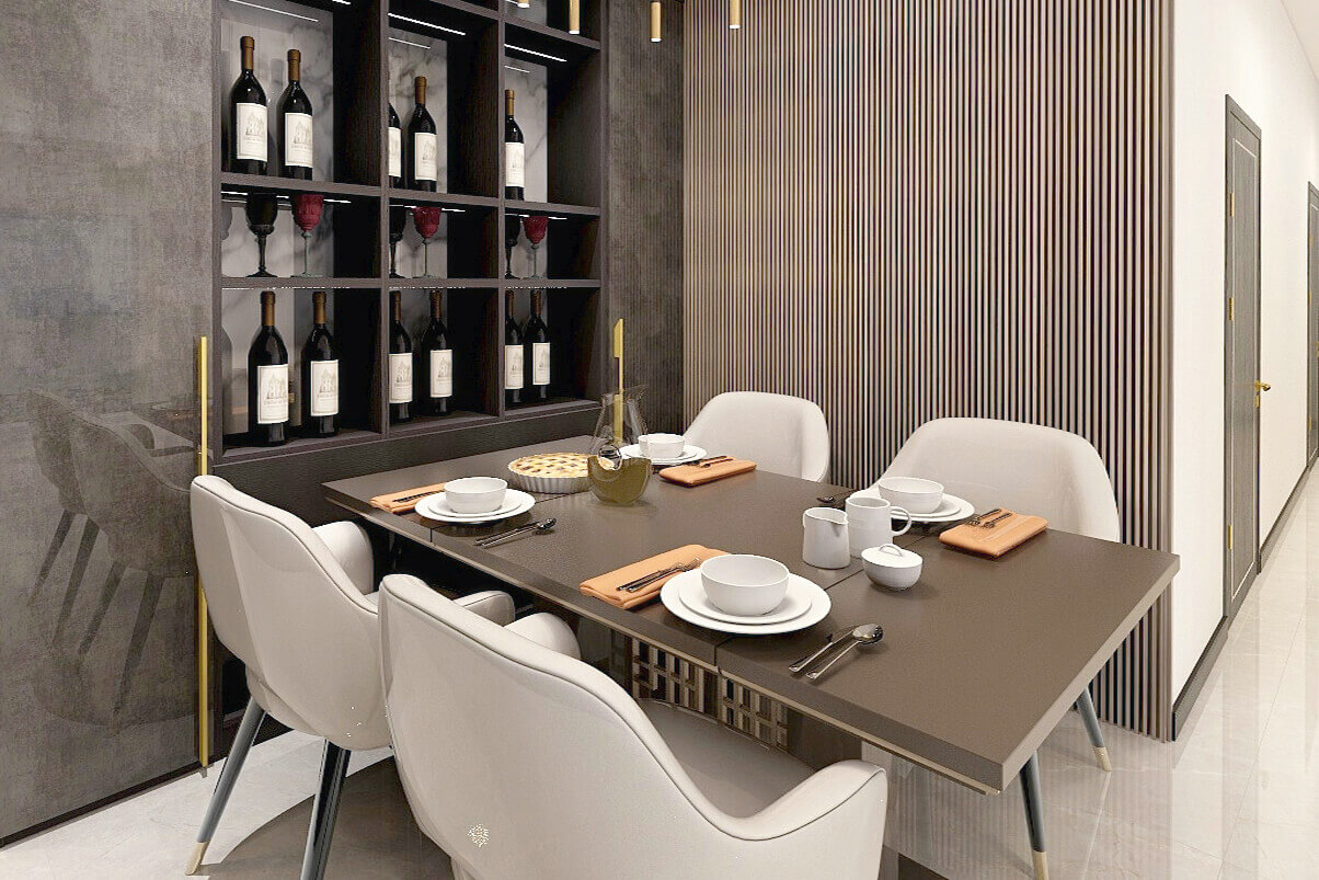 本案總面積134㎡。本案設計師以低飽和度色彩點綴空間,整體簡約大氣,輕奢的家居擺件讓整個家居環(huán)境更有質感。