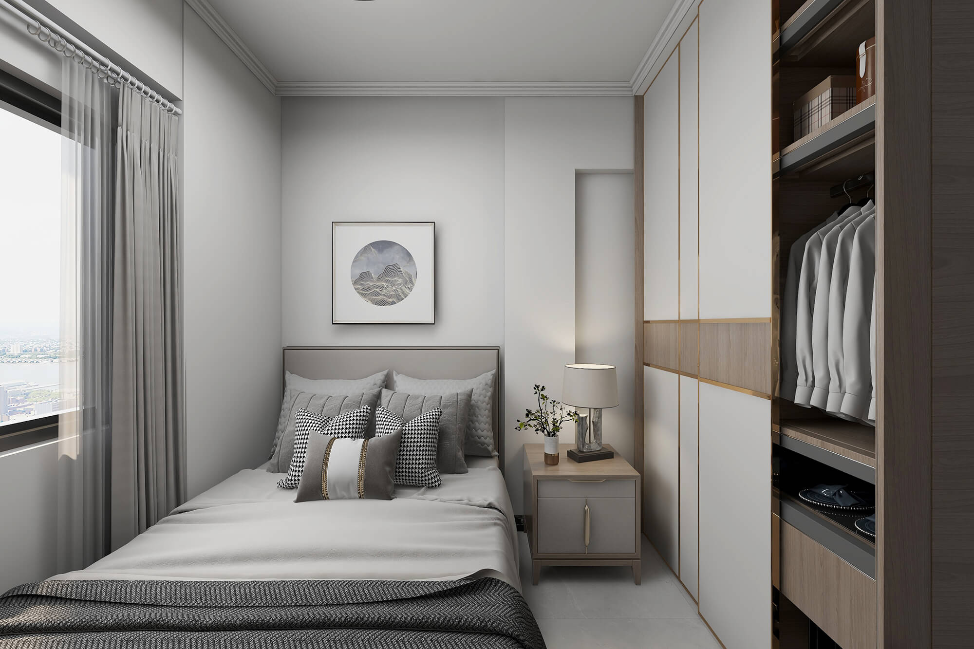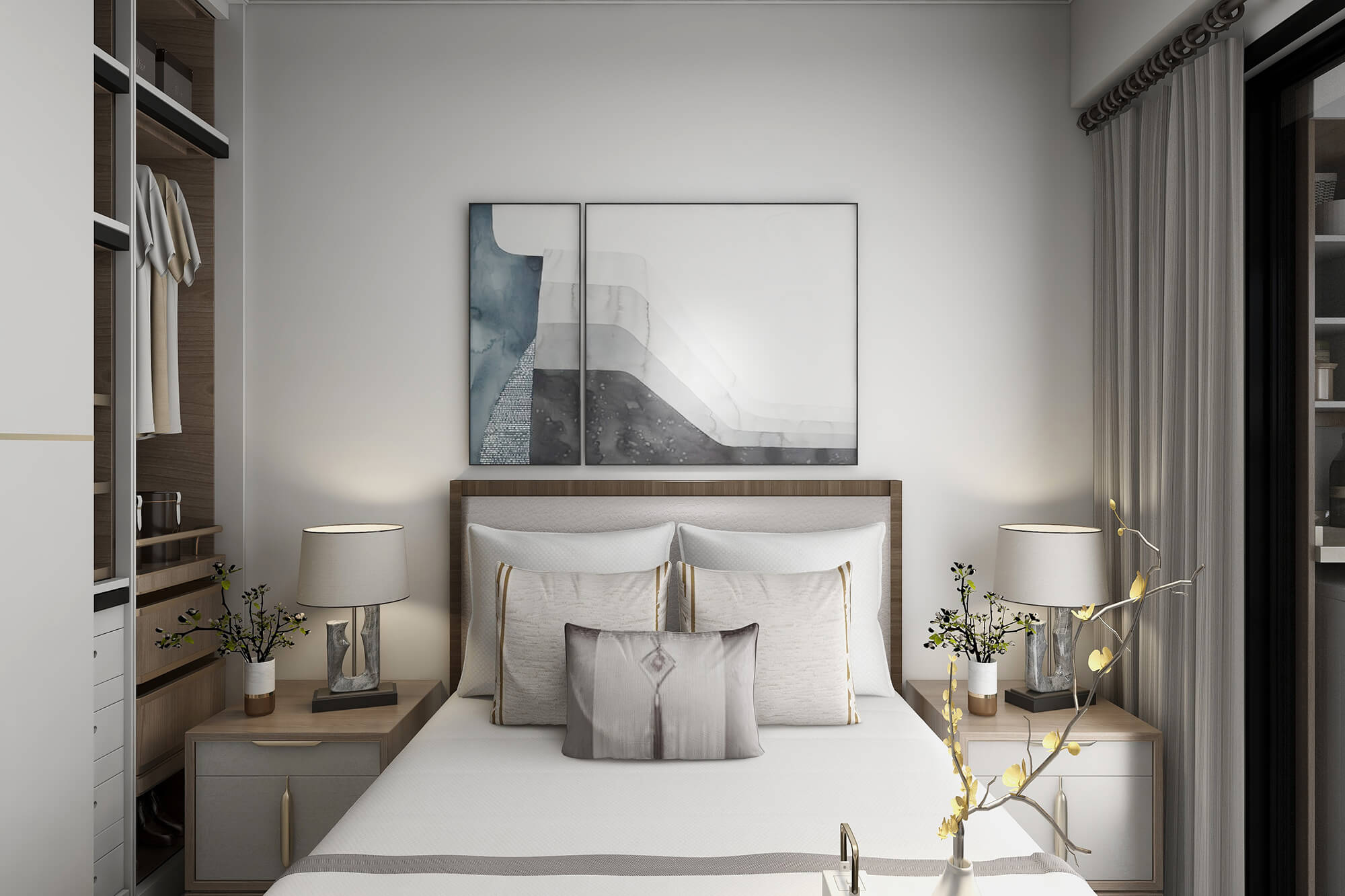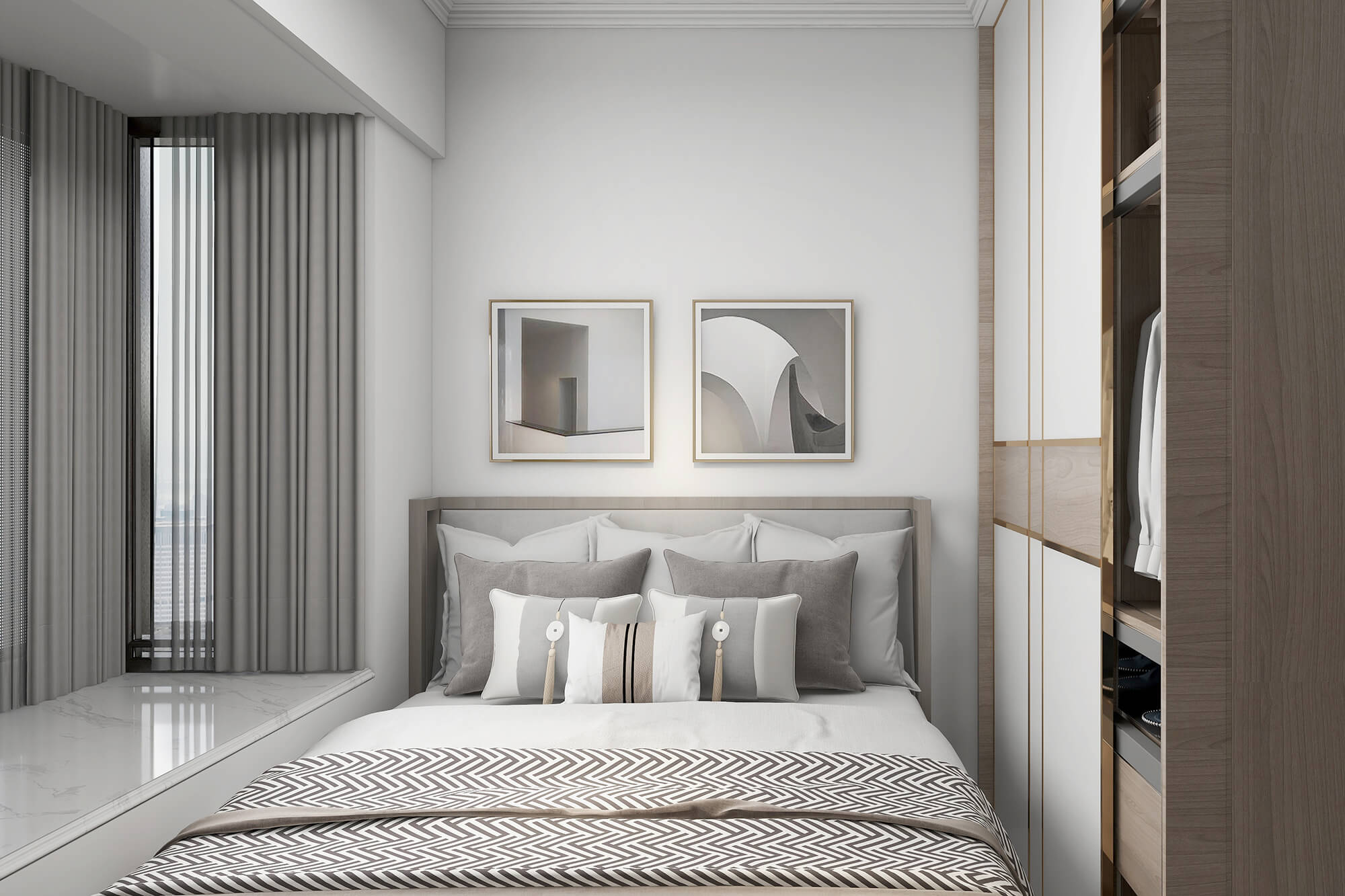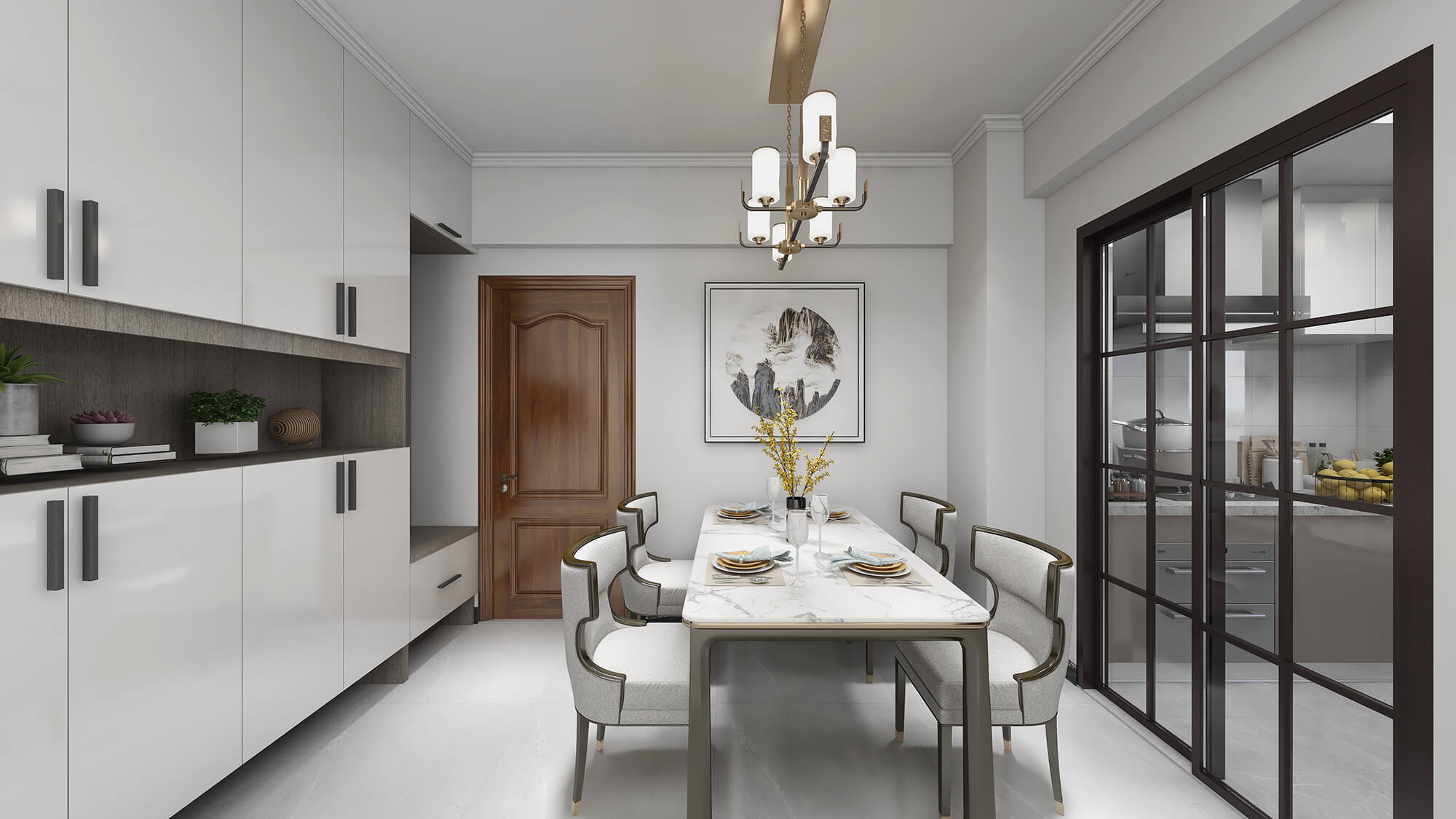 本案戶型為:3房2廳2衛(wèi),總面積72㎡。本案風格為新中式,在空間中以淺灰色為主色調,將中式元素以生活的面目表達出來。在造型、擺件等上面采用一些中式手法,為空間增添高雅秀逸的意境美,使得整體空間賞心悅目,并充滿韻味。