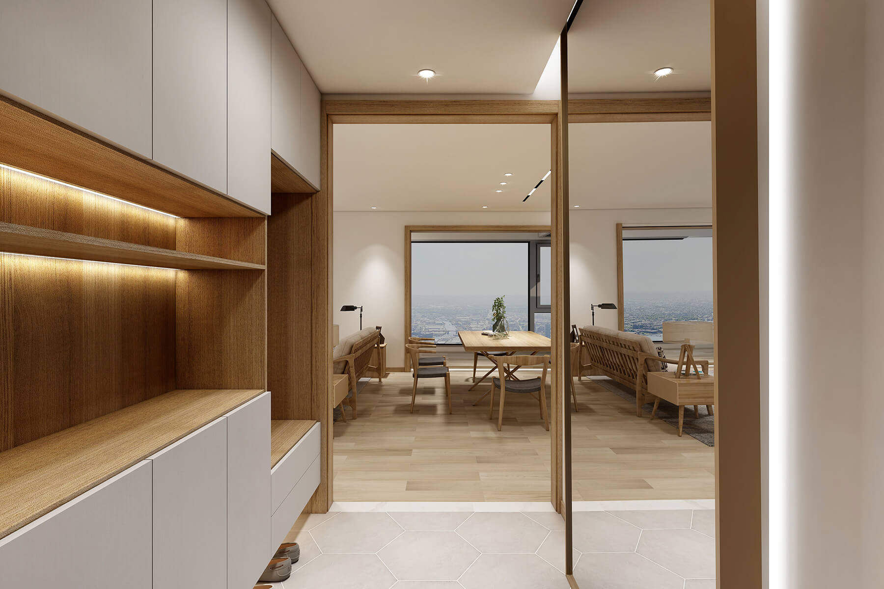 本案例為152㎡的日式風格,整體采用木質(zhì)結構,不尚裝飾,簡約簡潔。日式的干凈,可能再差一點點就不食人間煙火了??善植盍四敲匆稽c,所以在幽玄的意境下,煙火氣也完整地保留了下來。對原木質(zhì)感和陽光的熱愛,是日式溫暖的關鍵。柔美綠植和婆娑微妙的光影意境,又實現(xiàn)了日式美學的意境追求,打造溫暖自然的意境。