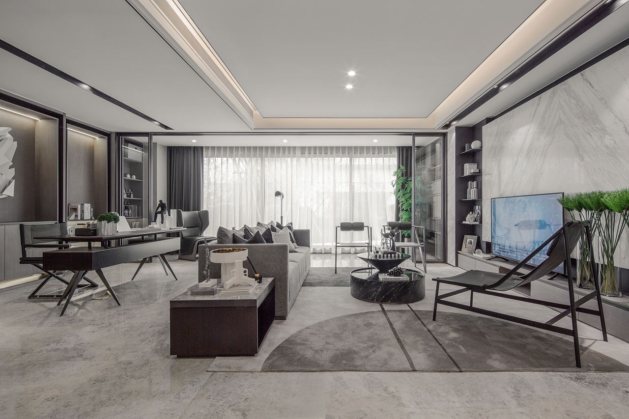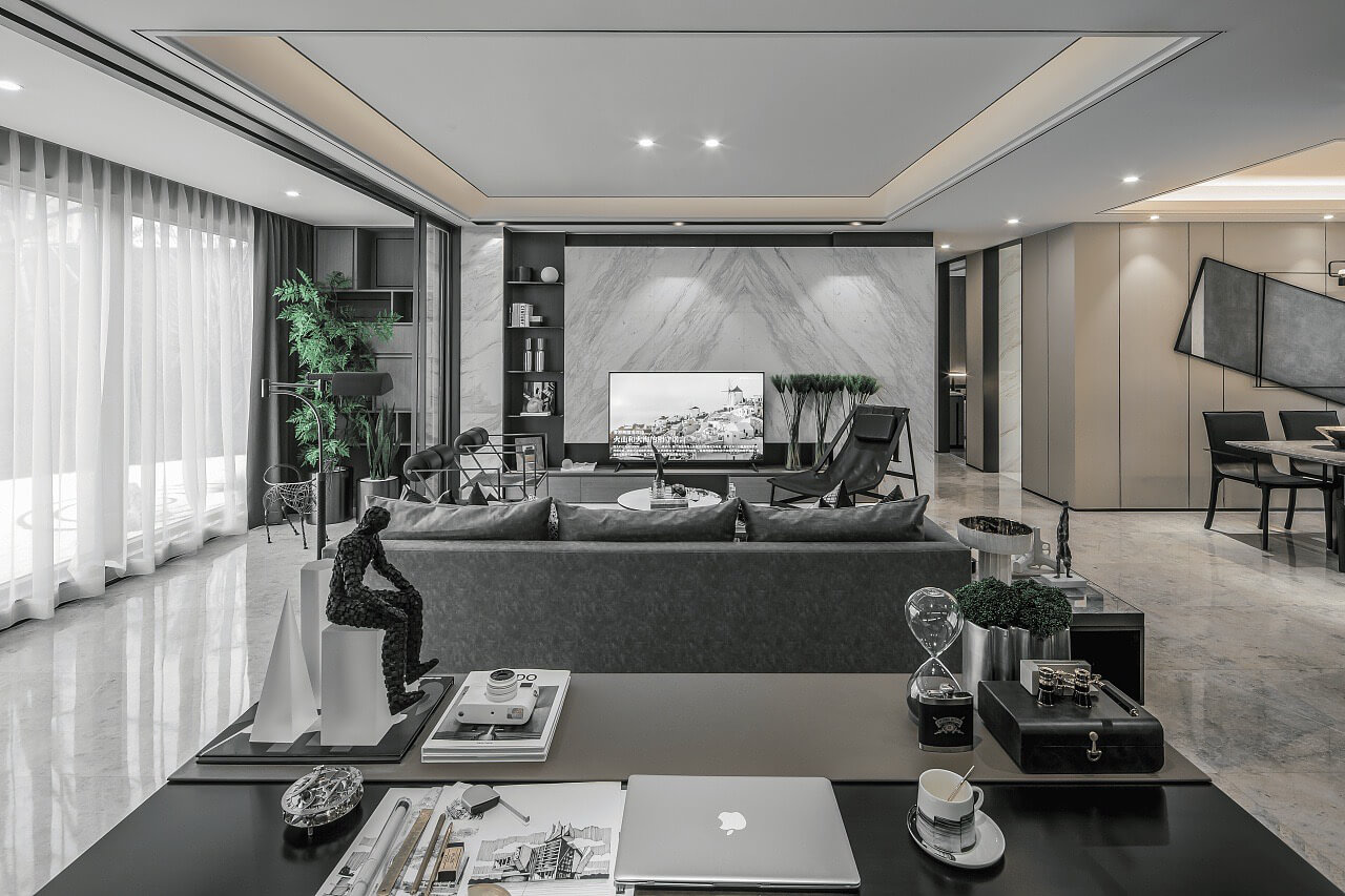 本案為現(xiàn)代簡約風格案例,業(yè)主喜歡簡約的黑白灰主色調,設計師以經(jīng)典而理性的黑白碰撞,鋪陳于極具藝術調性的空間紋理,流暢的線條與留白化的處理,讓空間處處散發(fā)精細而不失簡致的都市風尚。