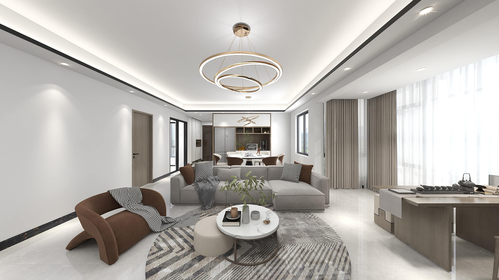 瀏覽量:971此案例為131㎡的現(xiàn)代簡約風(fēng)格,設(shè)計(jì)師充分考慮了內(nèi)外環(huán)境的關(guān)系,引景入室,引光入室,寬敞明朗的平面在開闊的落地窗的加持下,延伸出美妙的生活場景體驗(yàn)。