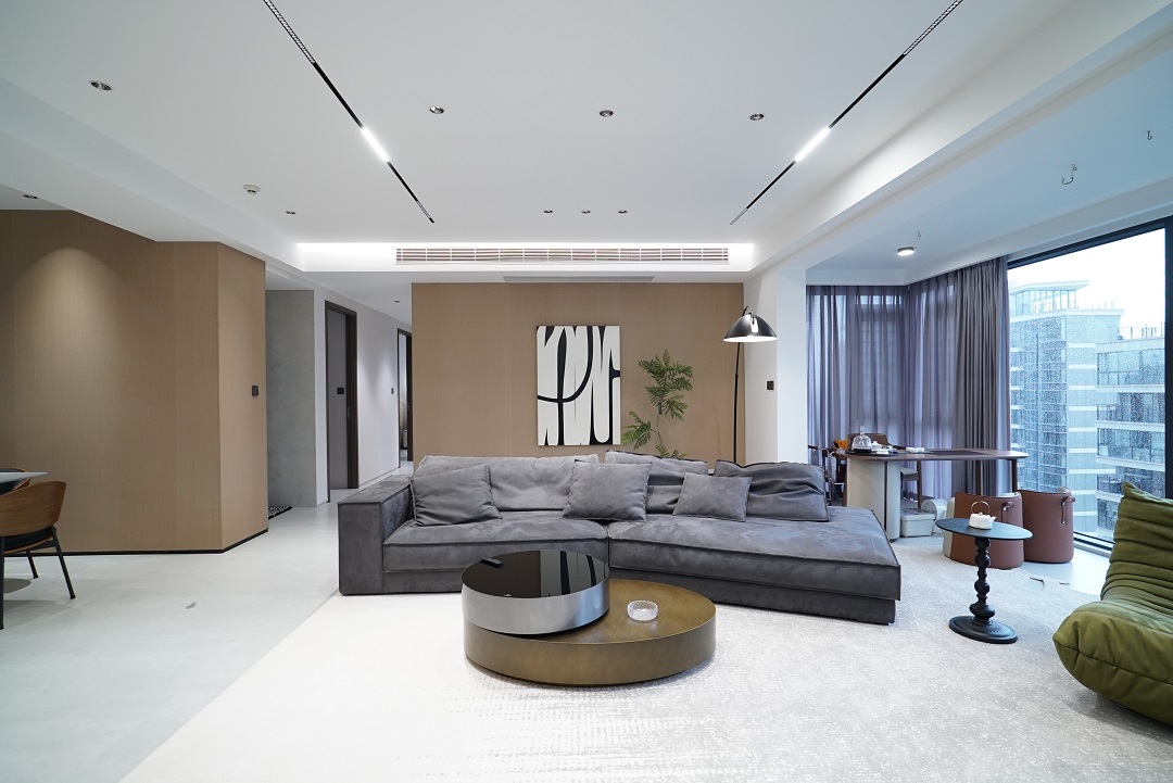 西園潤(rùn)府136㎡的現(xiàn)代簡(jiǎn)約風(fēng)三居室,大橫廳+無主燈的設(shè)計(jì),動(dòng)區(qū)空間給人感覺寬敞又明亮。整體以高級(jí)灰為主基調(diào)的設(shè)計(jì),加上優(yōu)雅的軟裝設(shè)計(jì),也讓整個(gè)家變得更加舒適有質(zhì)感。