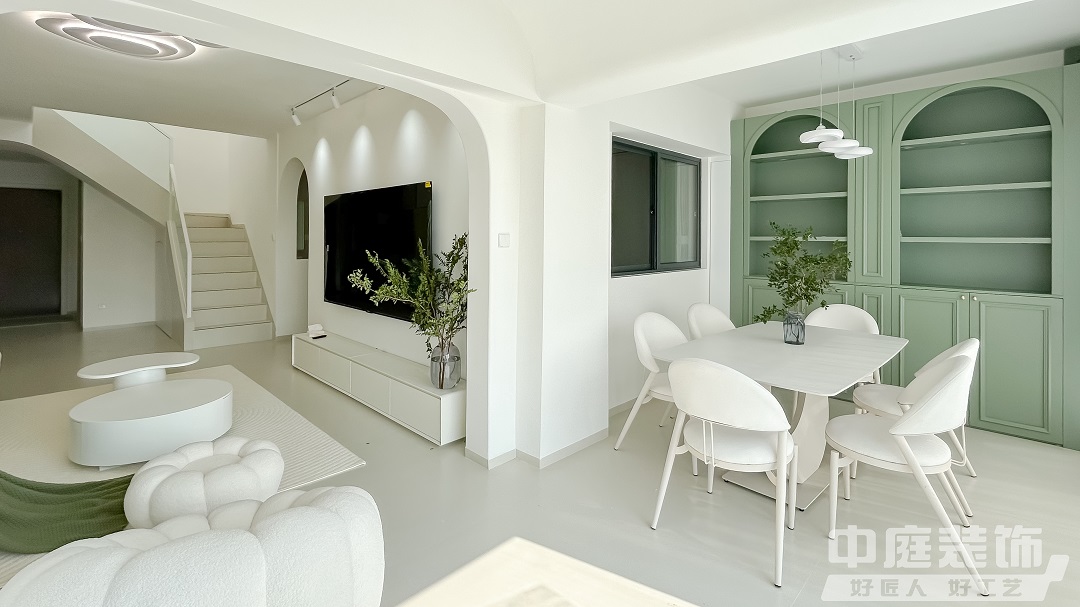 瀏覽量:470這是一套118㎡的復(fù)式住宅,將清新綠與奶油色巧妙融合,營(yíng)造出一種寧?kù)o而溫馨的氛圍,如夢(mèng)如幻的浪漫生活由此開始,大面積窗紗將室外光線過濾后傾撒入客廳。