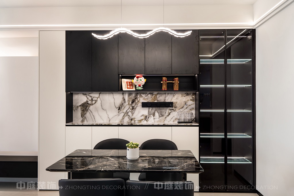 整個家以黑、白、灰為主色調(diào),簡約又高級??蛷d電視墻的設計很有層次,黑白柜體搭配大理石元素,質(zhì)感拉滿;餐廳的黑色大理石餐桌盡顯格調(diào)。玄關的黑色木門和“喜樂平安”的細節(jié),又添了幾分溫馨。廚房的灰色系櫥柜實用又美觀,衛(wèi)生間把洗衣區(qū)和洗漱區(qū)結合,大理石臺面太顯質(zhì)感了!整體風格利落大氣,每一處都透著精致,是現(xiàn)代年輕人都愛的極簡高級感沒錯了~