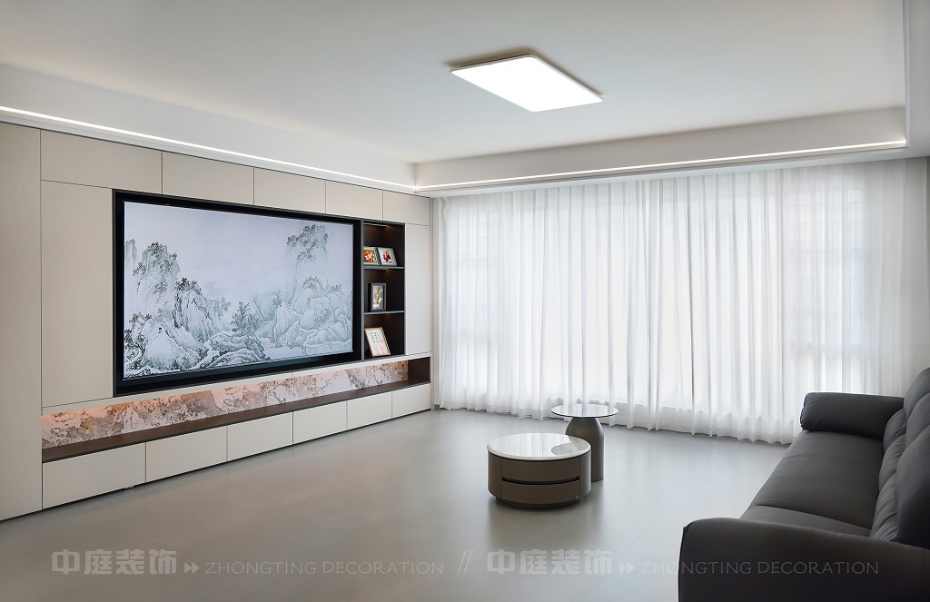 瀏覽量:198客廳電視背景墻的山水畫面,既具現(xiàn)代設(shè)計(jì)的視覺(jué)沖擊力,又蘊(yùn)含傳統(tǒng)山水意境。材質(zhì)上選用簡(jiǎn)約的板材、大理石與金屬元素,搭配簡(jiǎn)潔的家具造型,呈現(xiàn)出低調(diào)的奢華感。燈光設(shè)計(jì)以線性燈和嵌入式燈具為主,通過(guò)柔和的光影強(qiáng)化空間層次。同時(shí),在簡(jiǎn)約的布局中融入對(duì)生活細(xì)節(jié)的考量,讓整個(gè)空間既符合現(xiàn)代都市人的審美需求,又傳遞出含蓄的東方美學(xué)意境,實(shí)現(xiàn)了功能性與藝術(shù)性的平衡,打造出舒適且富有格調(diào)的居住環(huán)境。
