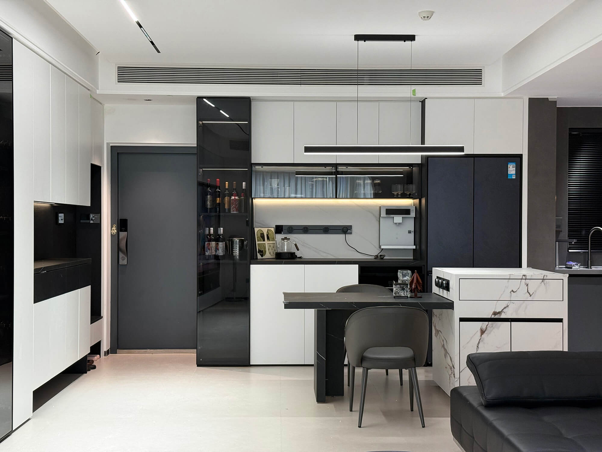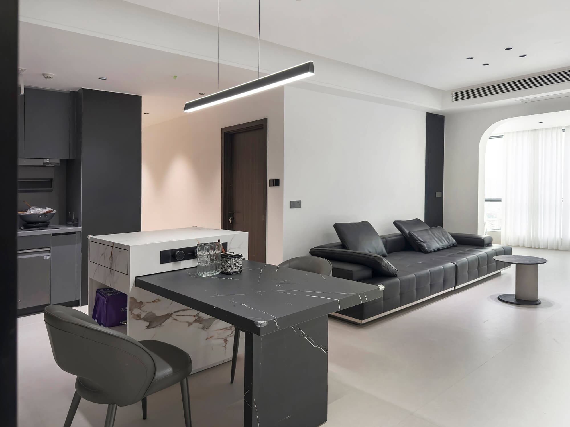 比極簡風格更強調(diào) “去繁就簡”,剝離所有非必要元素,僅保留空間核心功能與最簡潔的視覺表達。線條極致利落,色彩以單色調(diào)或雙色對比為主,材質(zhì)偏好純粹質(zhì)感,追求 “空而不空” 的境界,傳遞寧靜、專注、無干擾的純粹空間體驗。