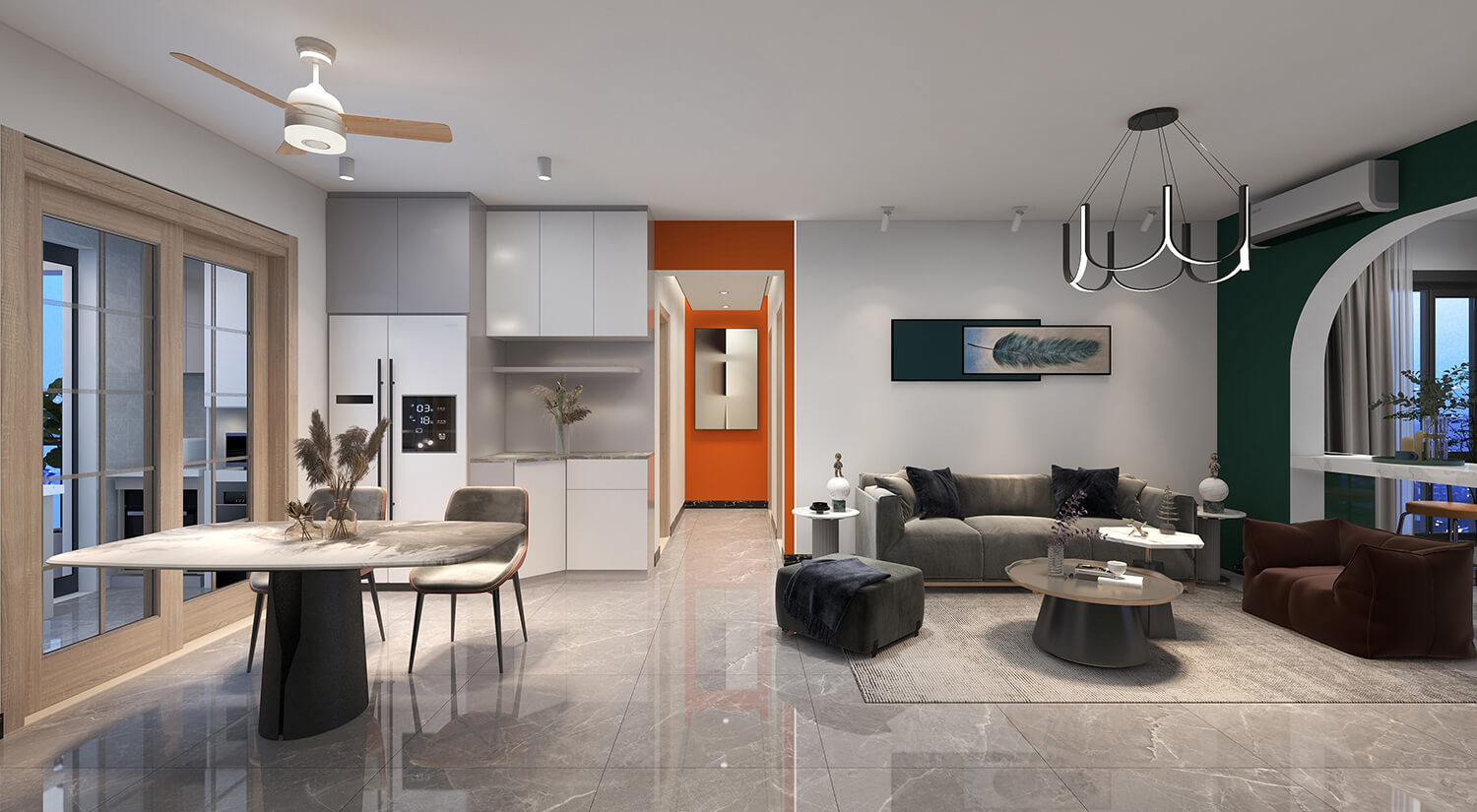 瀏覽量:228本案例戶型為:3房1廳1衛(wèi),總面積125㎡。這是一套輕奢風格的房子。設計師采用開放式布局,將客廳、餐廳融為一體。這樣不僅增加了家庭成員的互動和交流,也可以讓房間看起來更加寬敞。輕奢金屬飾品與布藝沙發(fā)的結合,使得畫面具有時尚感又不乏溫馨。