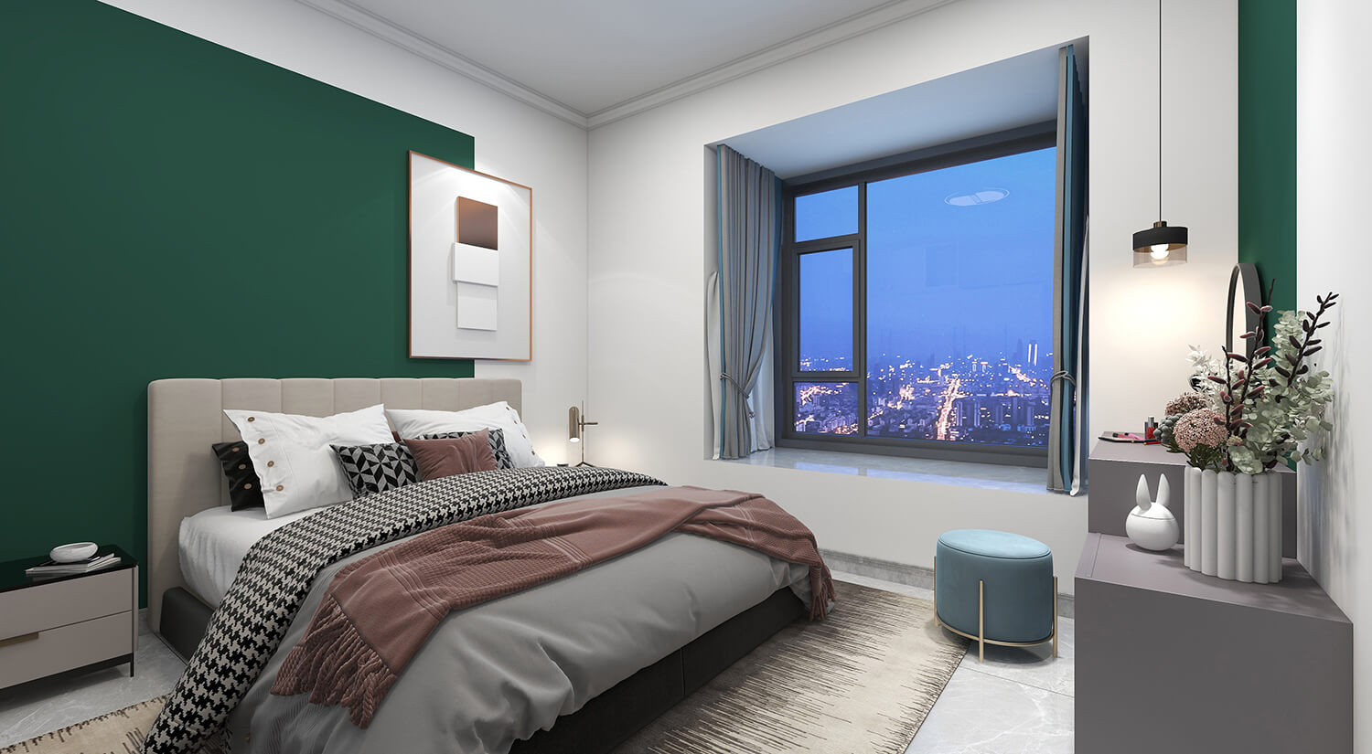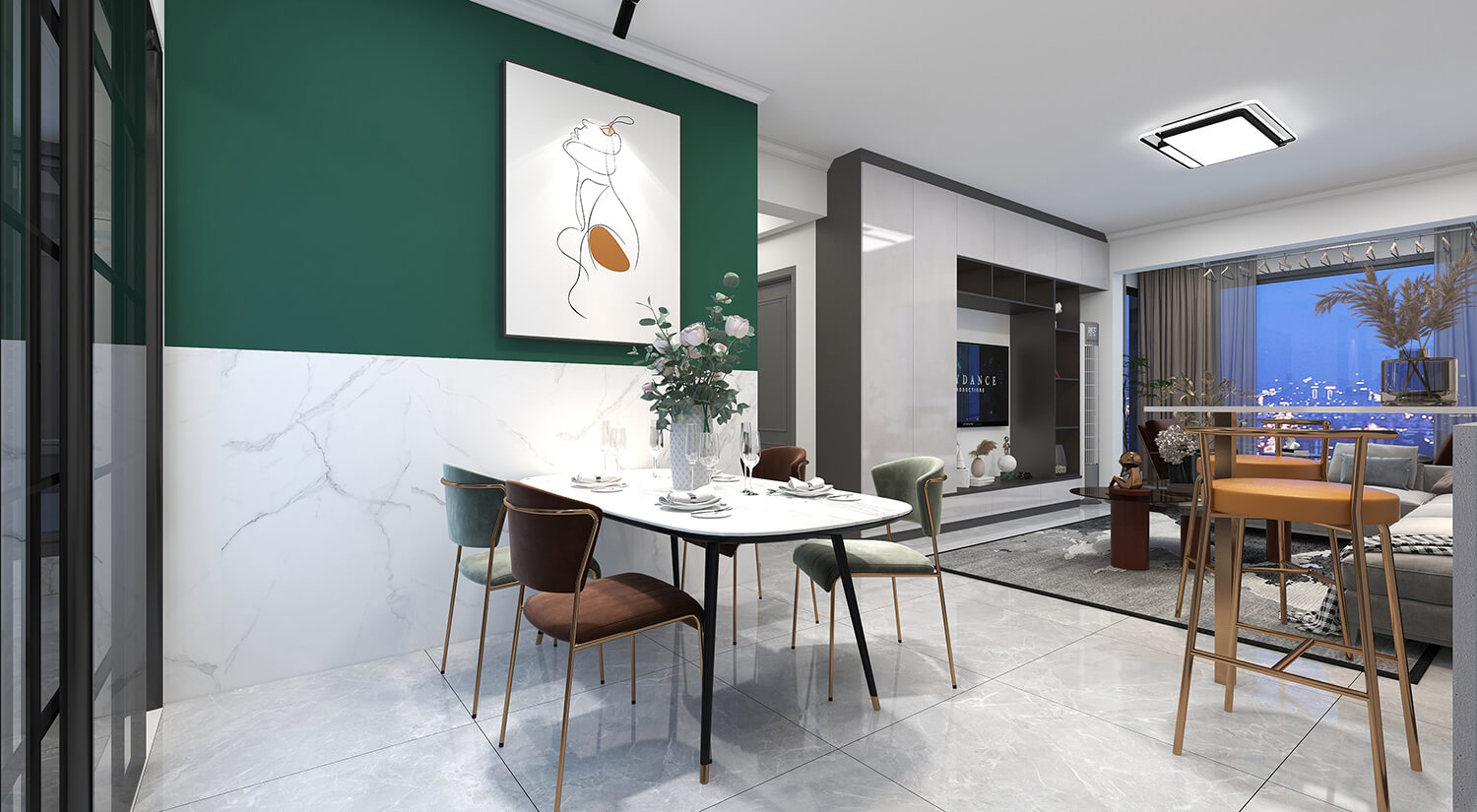 瀏覽量:333本案例戶型為:4房1廳2衛(wèi),總面積130㎡。墻壁、地板和天花板的顏色選擇明亮的白色,并搭配少量的深綠色作為點(diǎn)綴。在各種金屬質(zhì)感家具元素的襯托下,整體現(xiàn)代感十足。
