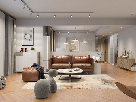 客廳中,設(shè)計(jì)師選用暖色作為空間的主色調(diào),再搭配白色與原木元素作為空間的點(diǎn)綴,打造簡(jiǎn)約的質(zhì)感。造型簡(jiǎn)潔的燈具,線條感十足,為客廳增添明亮的視覺(jué)感受。深咖色的沙發(fā)使得空間更加沉穩(wěn),提升了空間的質(zhì)感。